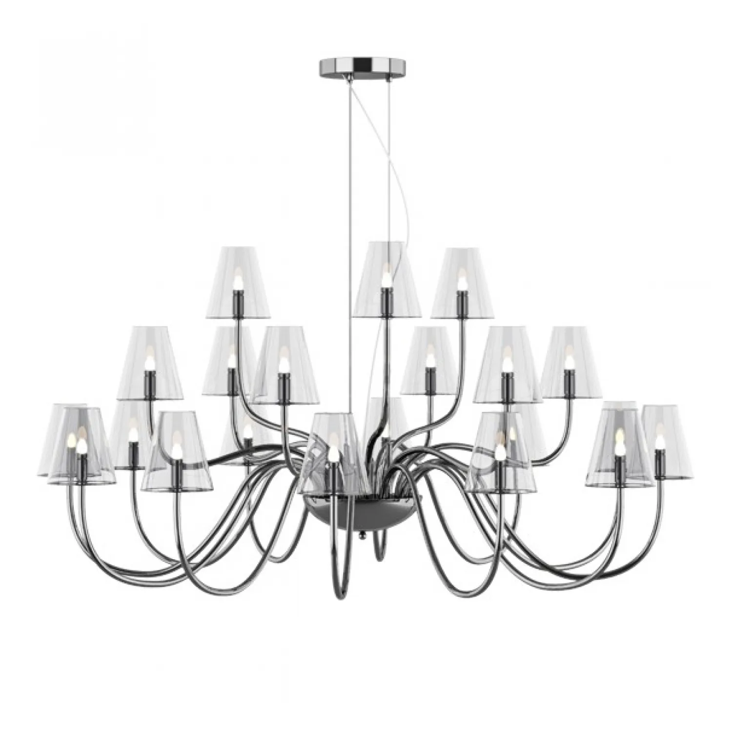 Изготовленная из высококачественных материалов, эта люстра обладает прочной конструкцией и долговечностью. Хромированная отделка придает ей стильный и современный вид, который гармонично впишется в любой интерьер.