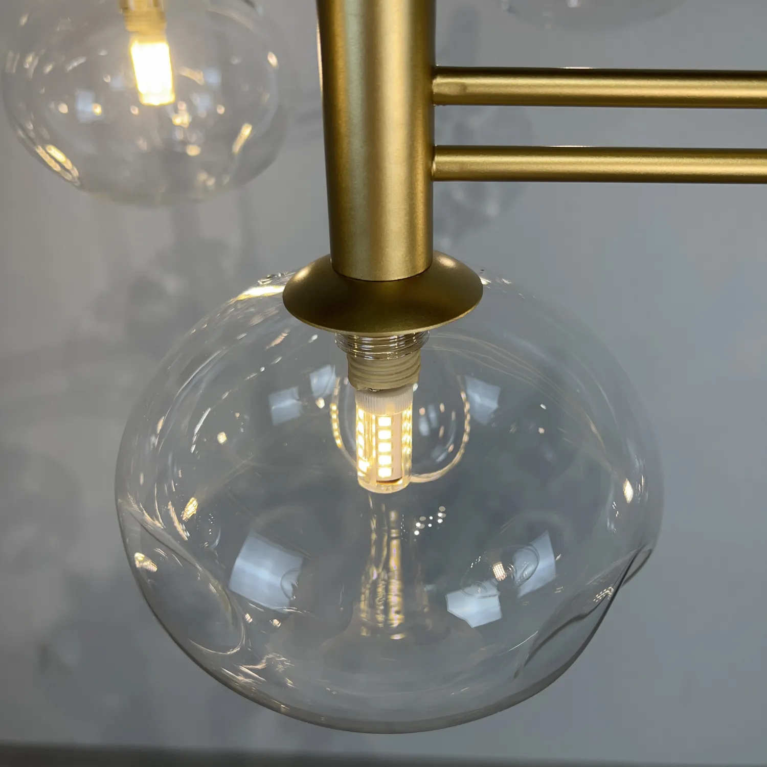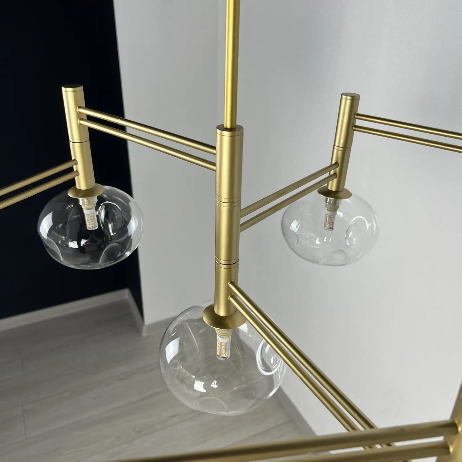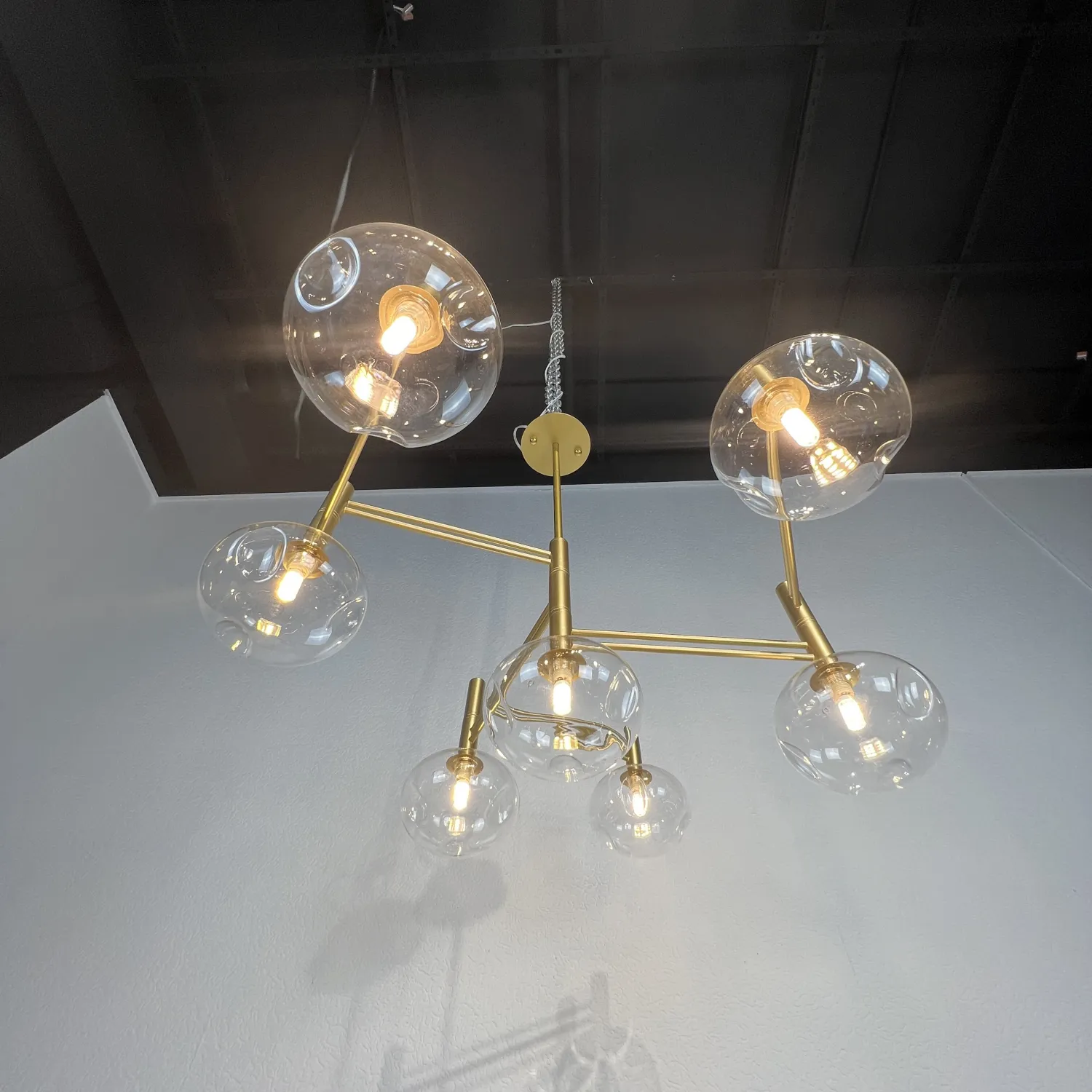 Семь прозрачных плафонов из высококачественного стекла создают прекрасное освещение, распространяя мягкий и яркий свет по всему помещению. Благодаря своей форме и размеру, эта люстра идеально подходит для гостиной, столовой или спальни.