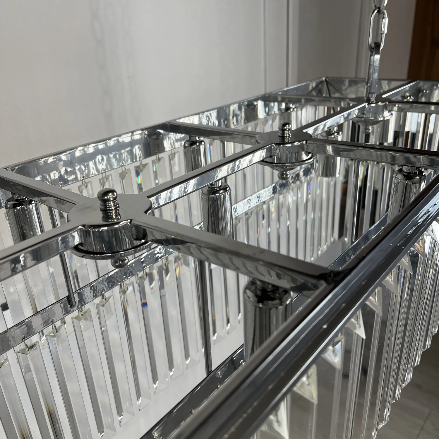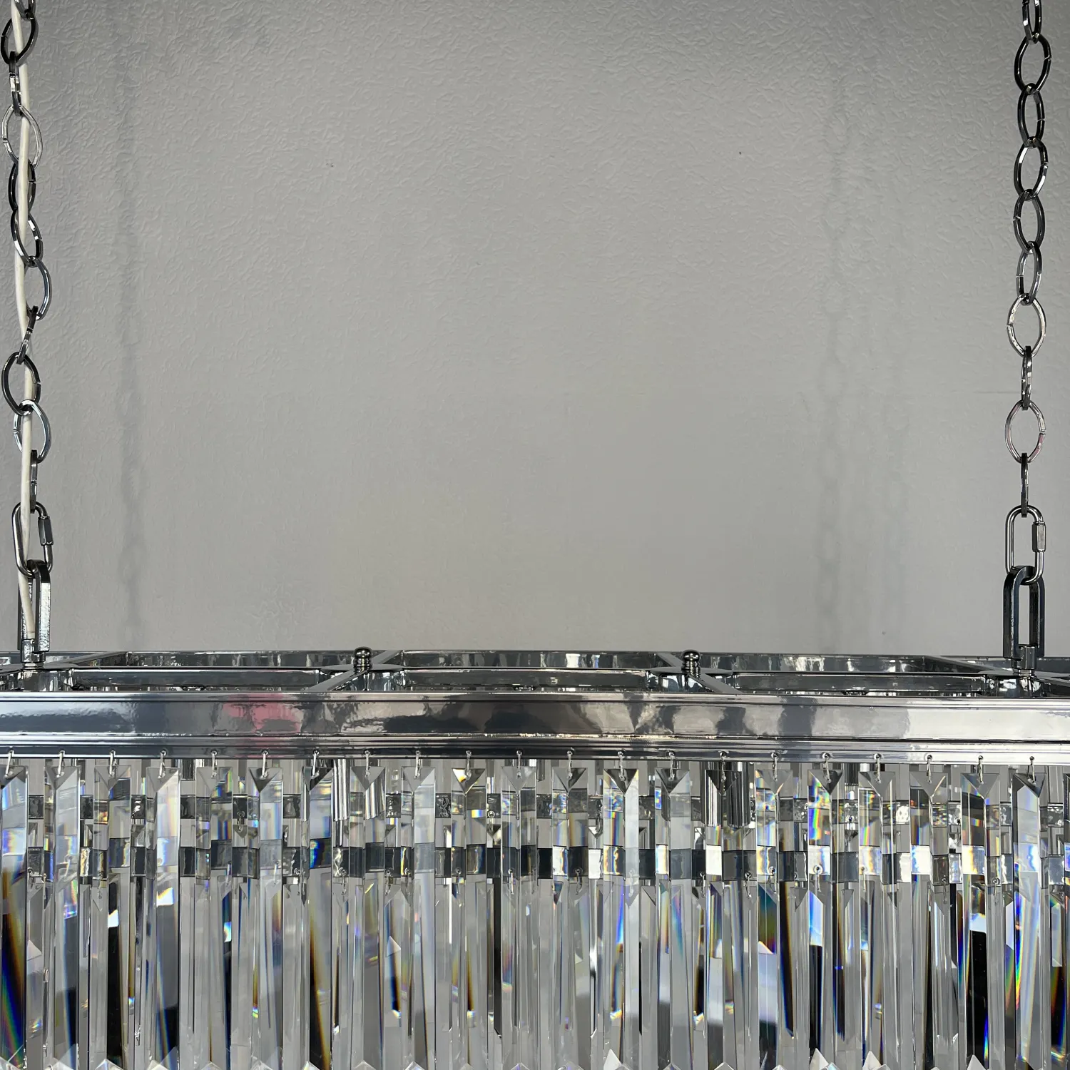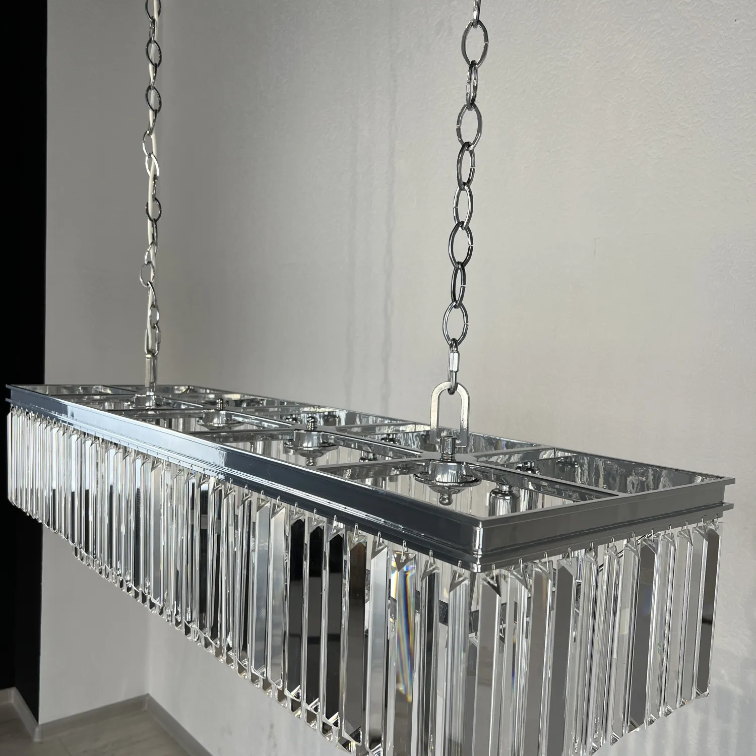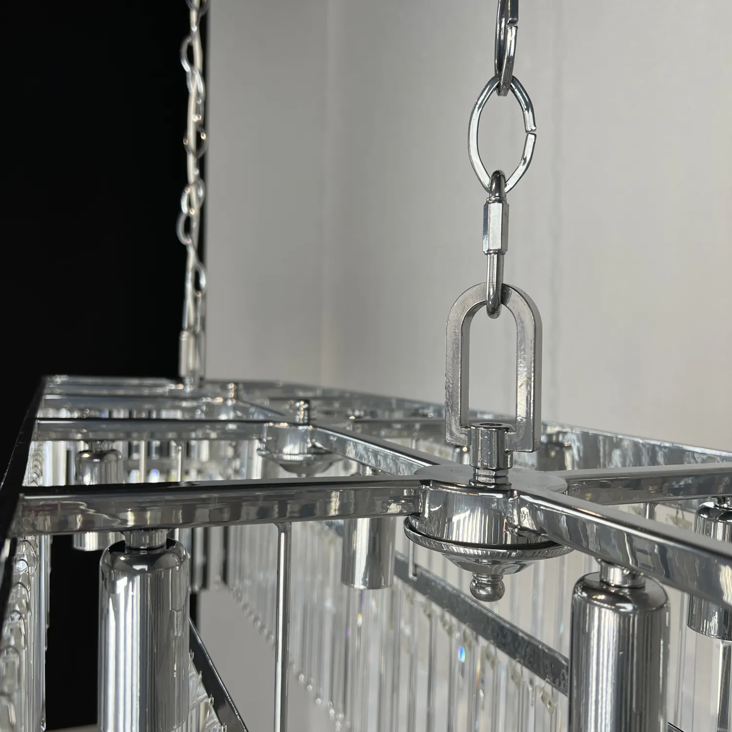 RH 1920S ODEON CLEAR GLASS FRINGE 120 chrome идеально подойдет для гостиной, столовой или холла, придавая им изысканный и роскошный вид. Благодаря своей универсальности, она также может быть использована в коммерческих помещениях, таких как рестораны или отели.