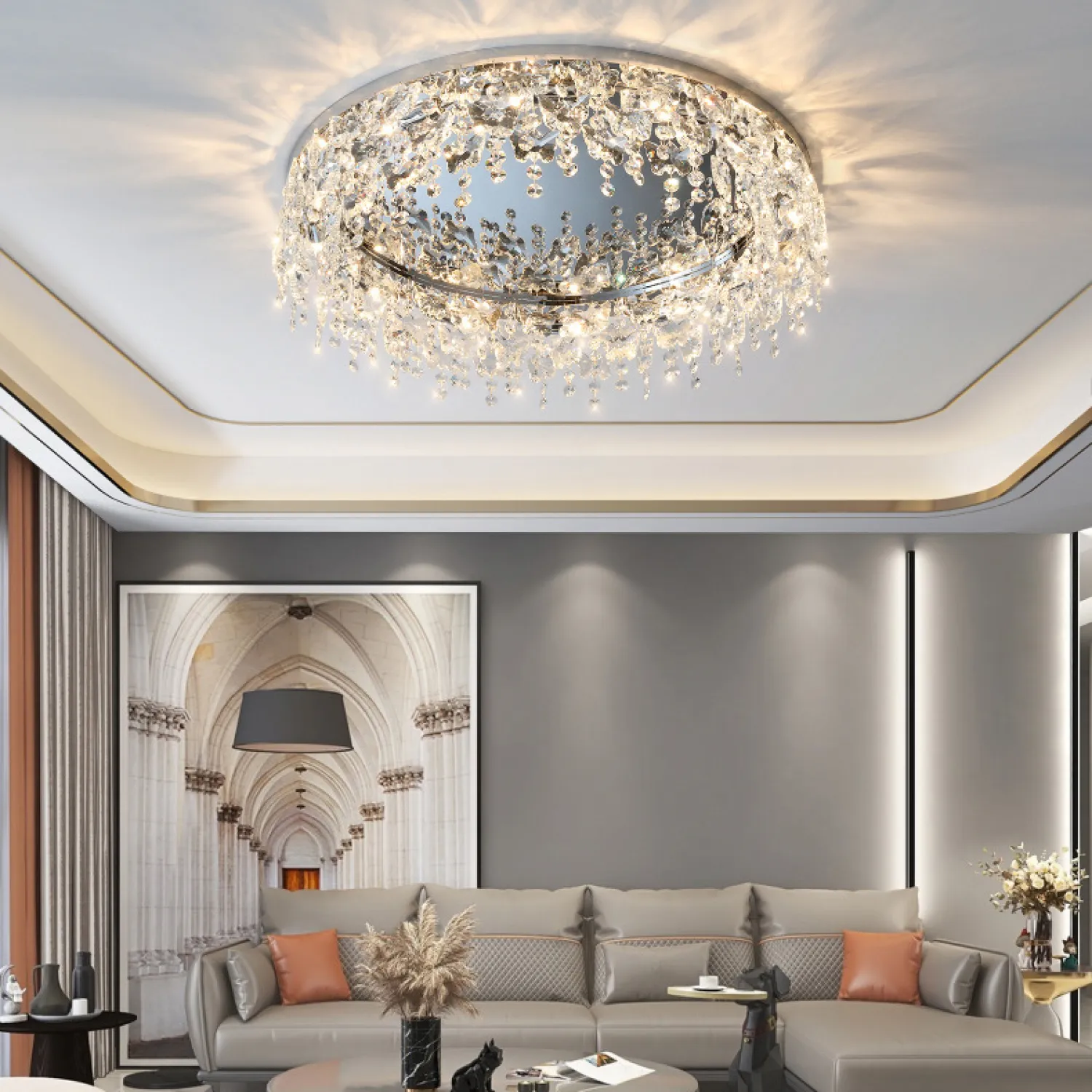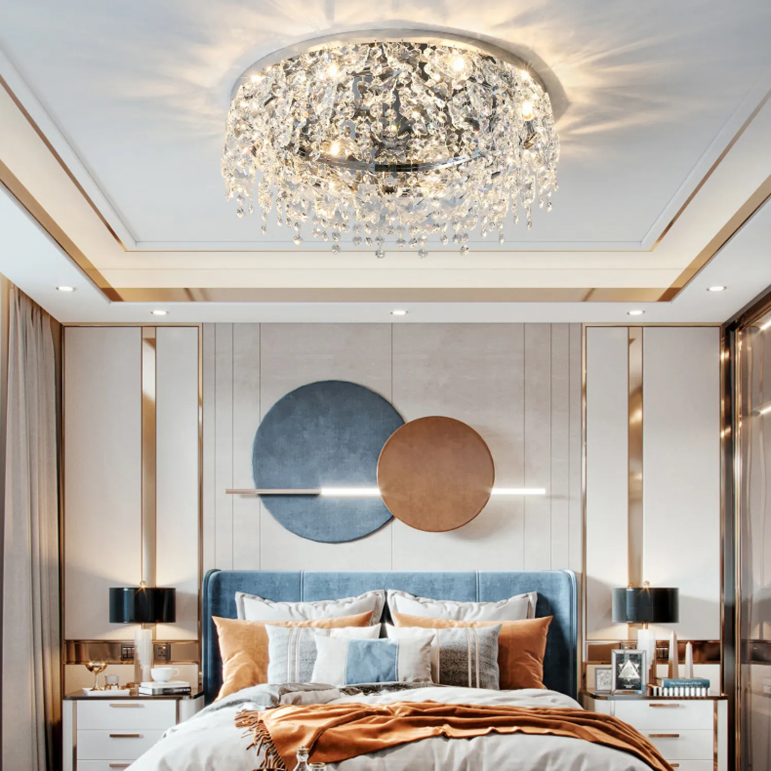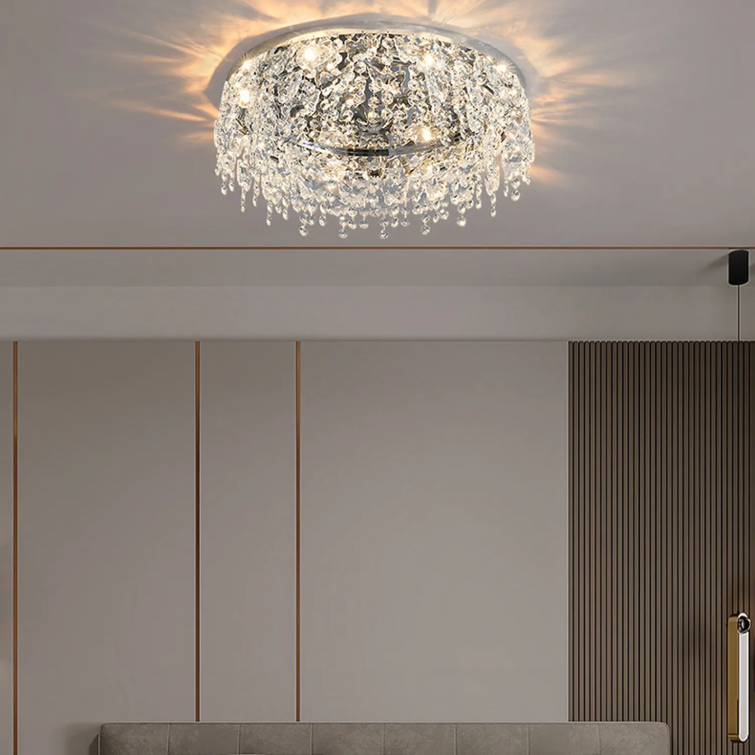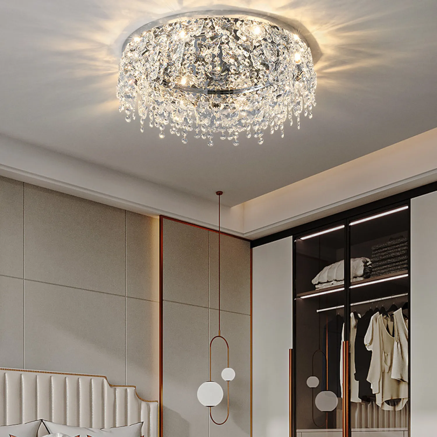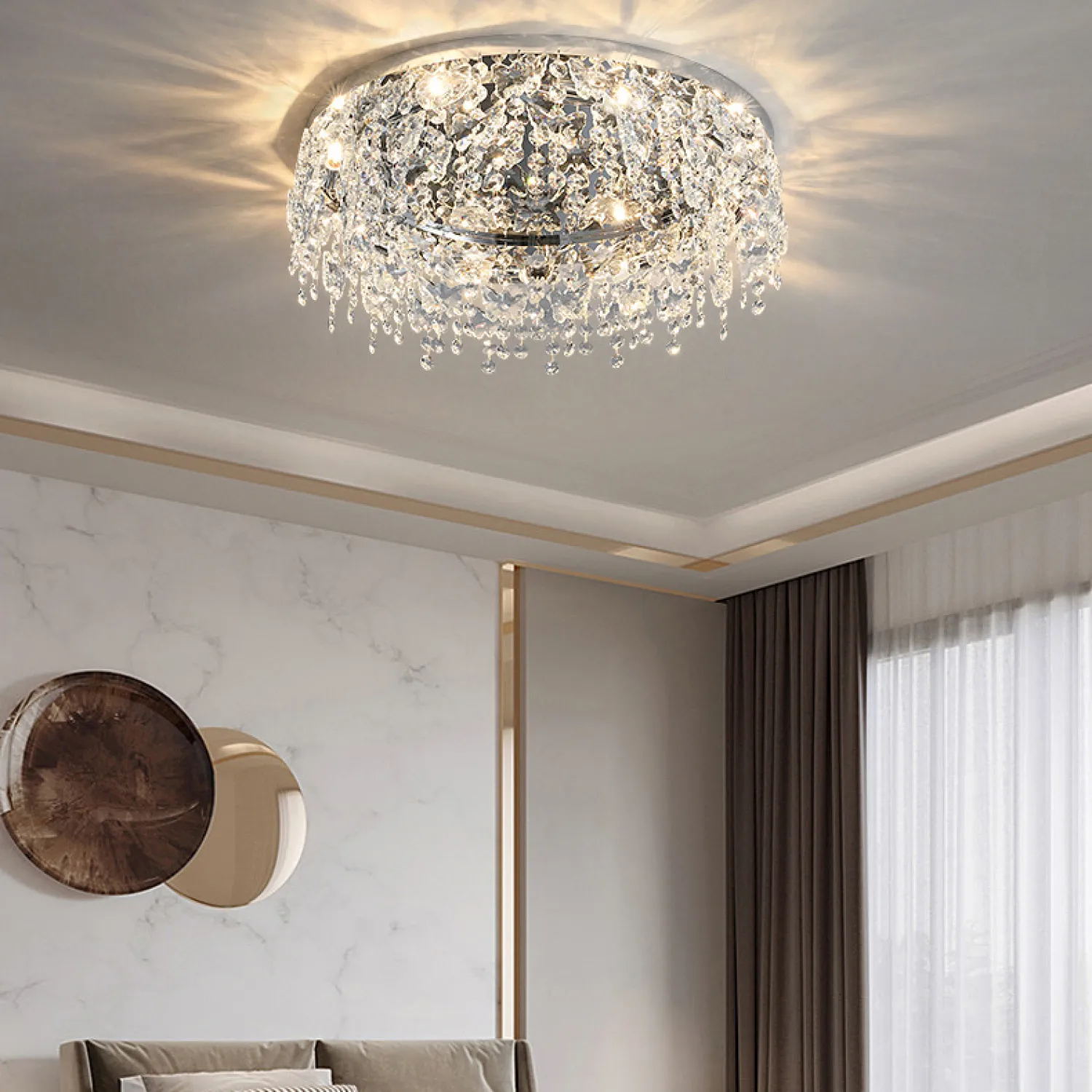 Эта потолочная люстра имеет диаметр 80 см, что позволяет ей идеально вписываться в пространство любой комнаты. Благодаря своей универсальности, она подходит для гостиной, спальни, столовой или любого другого помещения, которое вы хотите украсить.