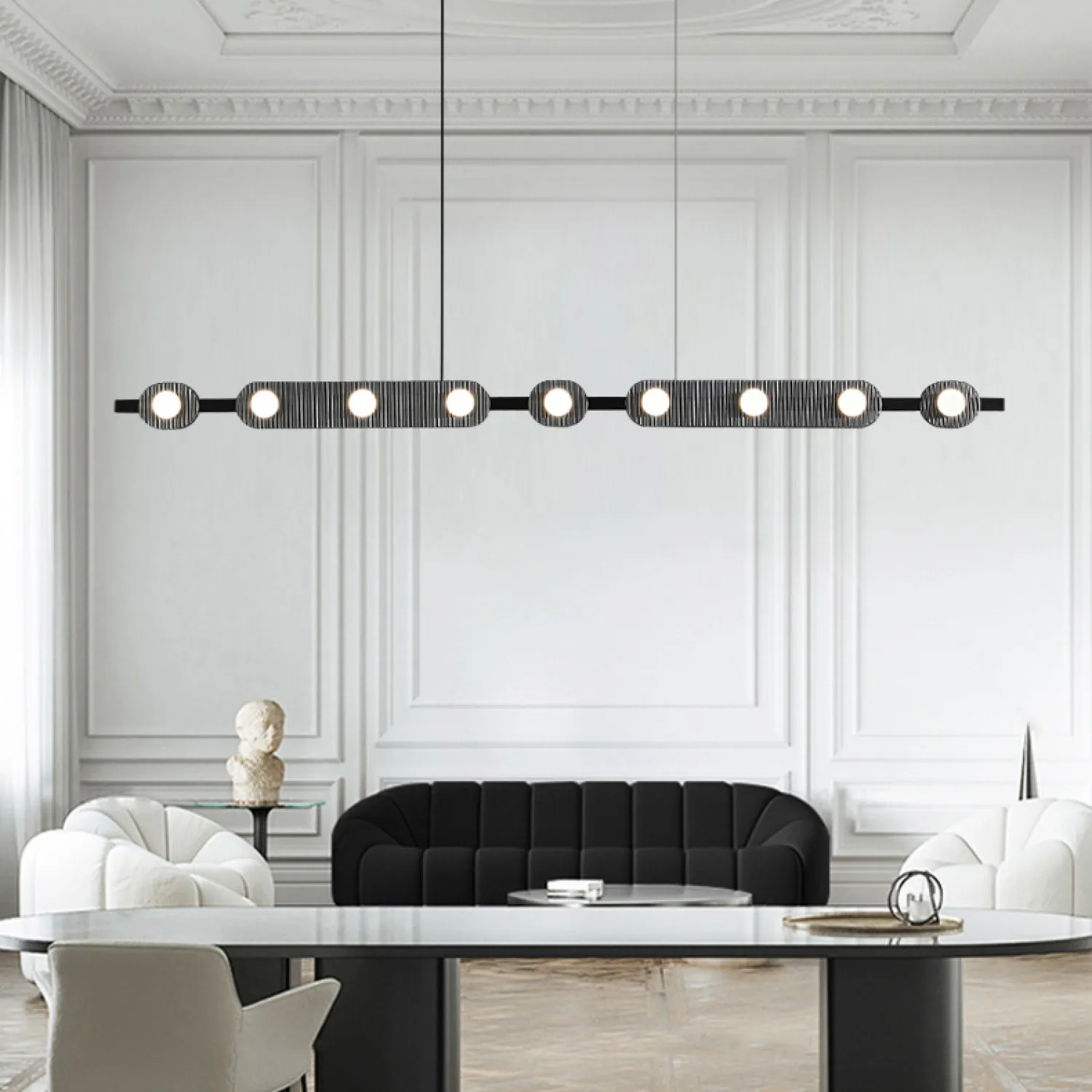 Этот подвесной светильник выполнен из прочного и надежного материала, который обеспечивает долговечность и надежность работы. Он легко монтируется на потолок и имеет регулируемую высоту, что позволяет вам настроить его под ваши индивидуальные потребности.