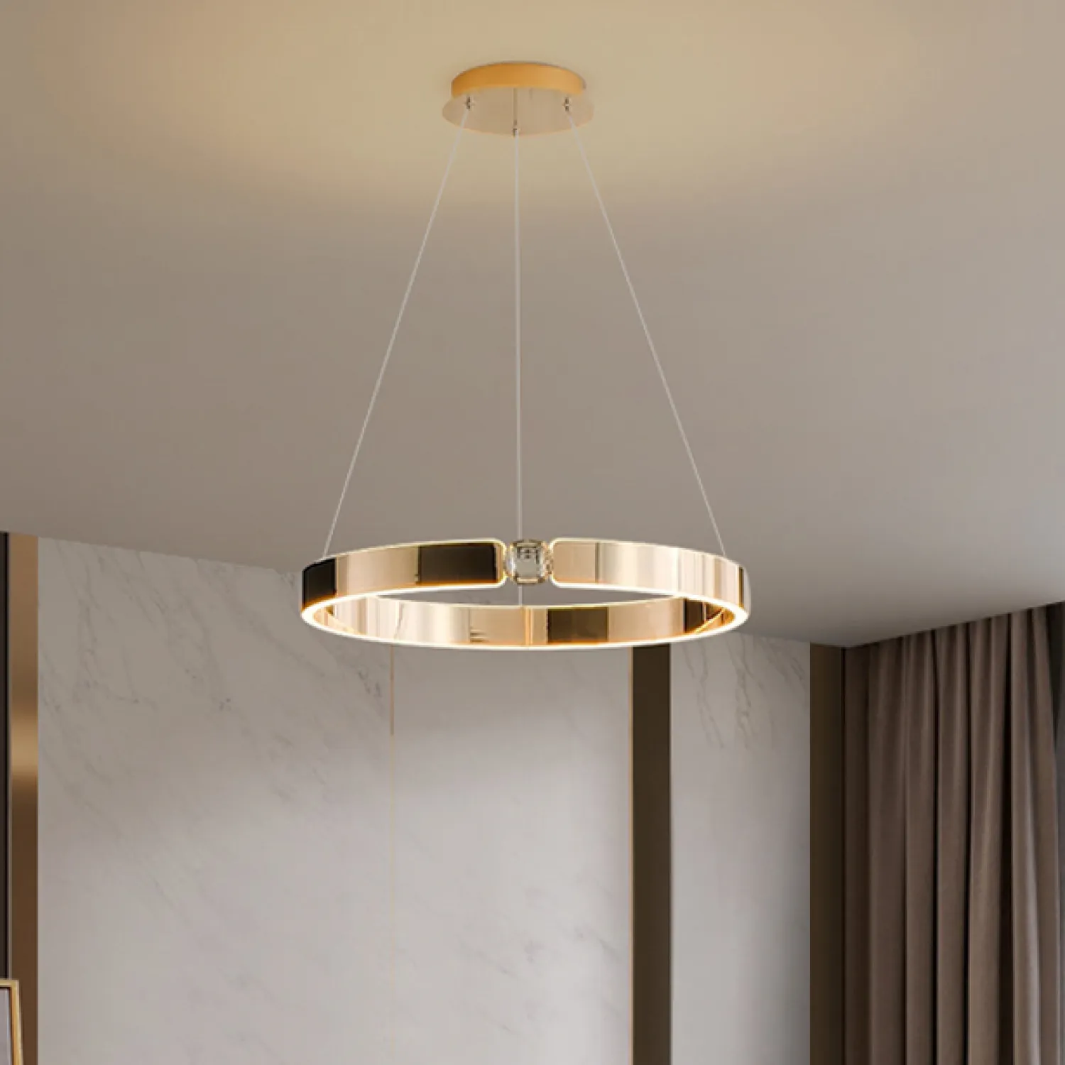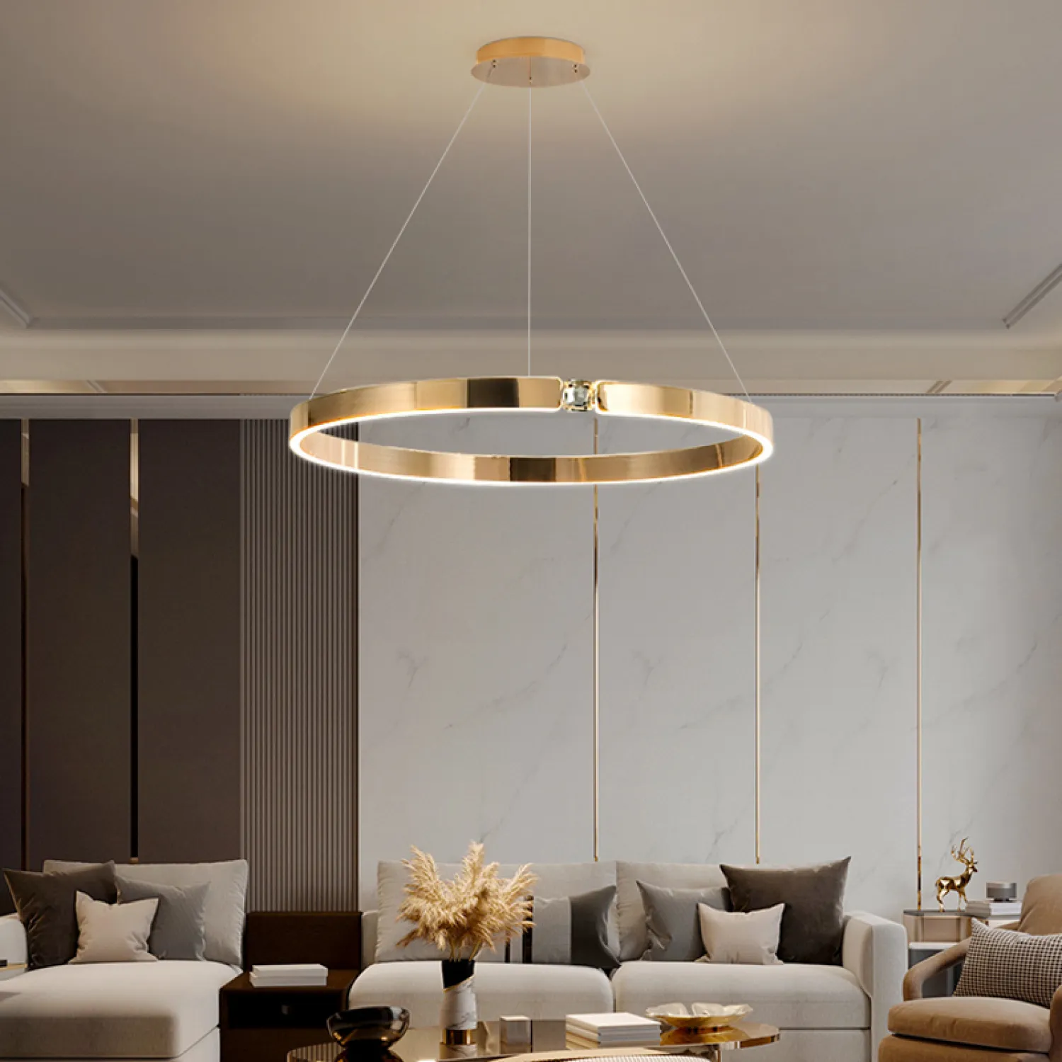 Сочетание богатого коричневого цвета и изысканного дизайна создает неповторимую атмосферу роскоши и комфорта. Благодаря своему кольцевому формату, эта люстра идеально впишется в любое помещение - будь то гостиная, столовая или спальня.