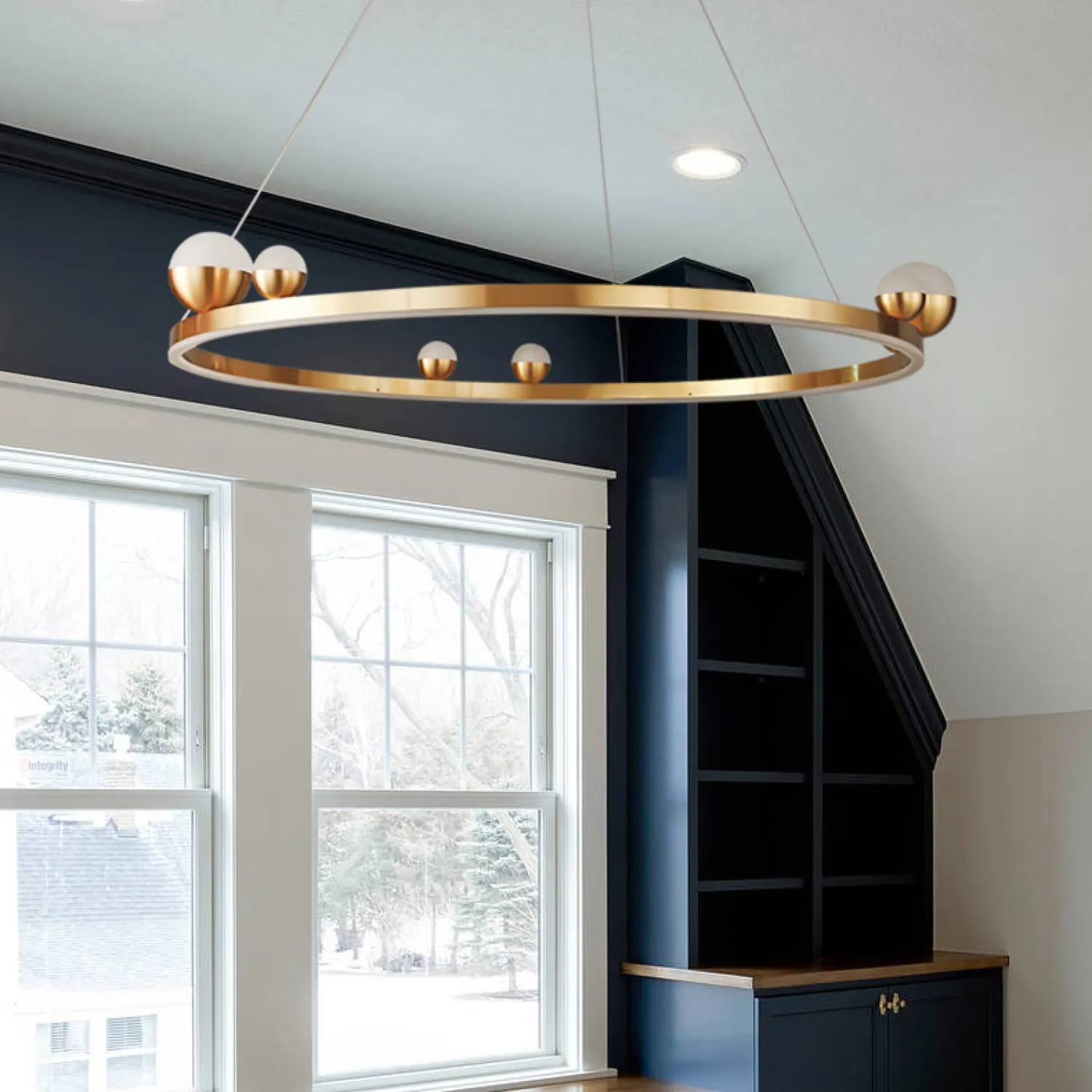 Эта подвесная люстра легко устанавливается и подходит для помещений с высокими потолками. Вы сможете регулировать высоту подвеса, чтобы создать идеальное освещение для вашего пространства.