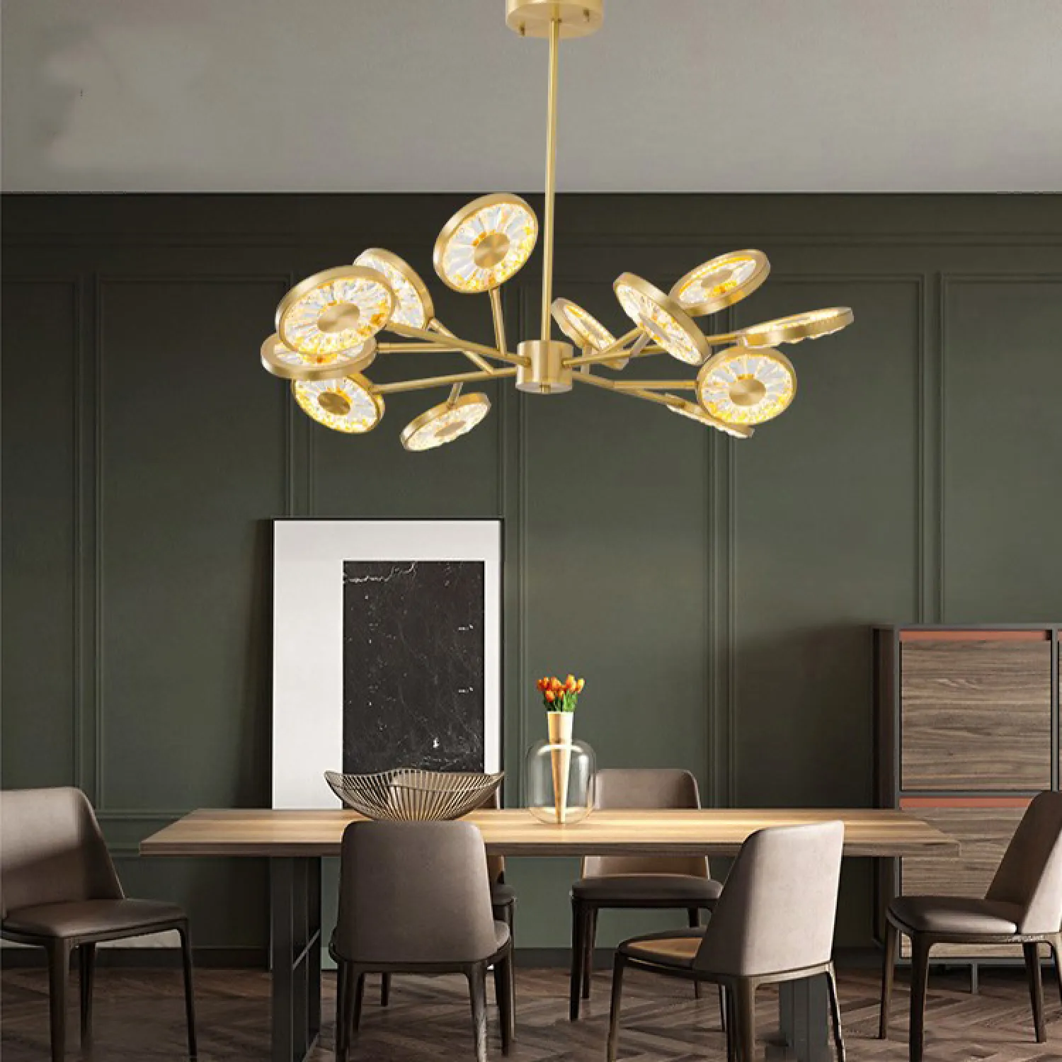 Люстра RALDA D97 имеет прочную металлическую конструкцию, которая обеспечивает надежность и долговечность товара. Ее элегантный и изящный дизайн привлекает внимание и станет прекрасным дополнением любого интерьера.