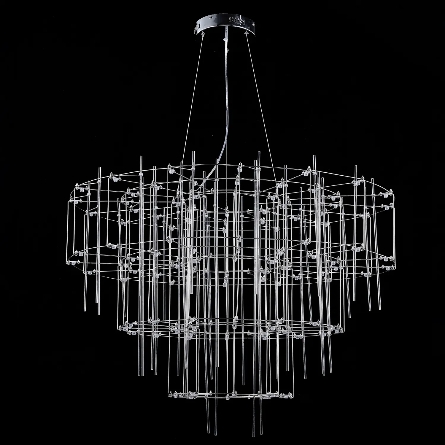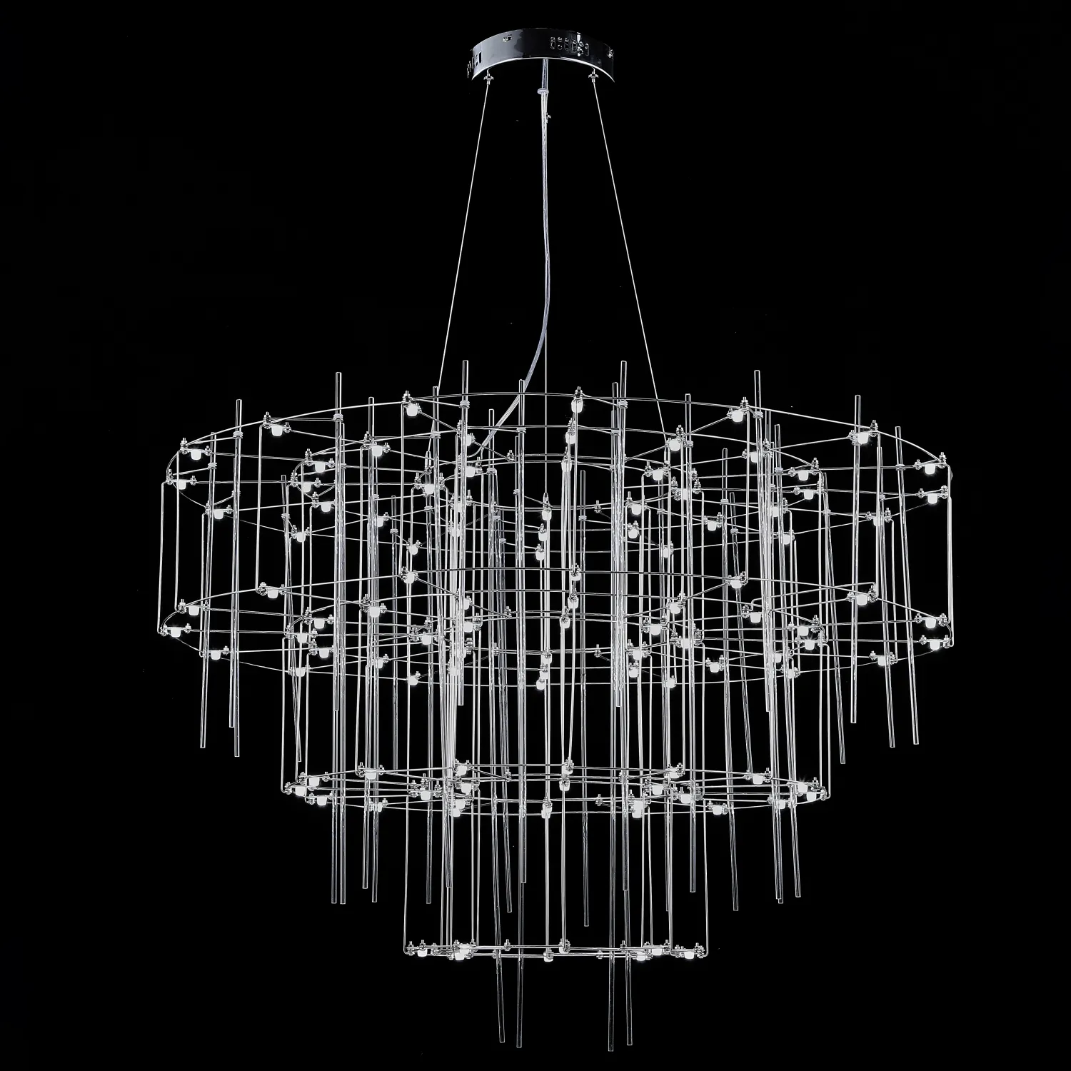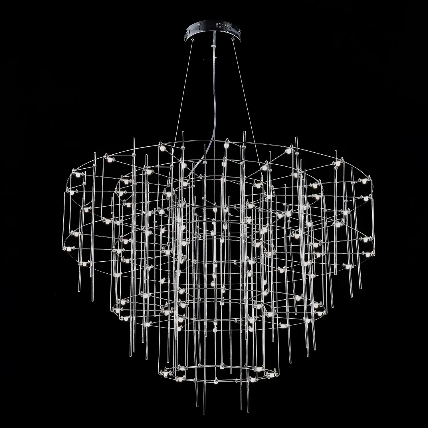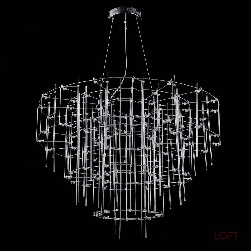 Люстра с точечными светодиодными источниками на серебристом каркасе с декором из стеклянных стержней CHILL A