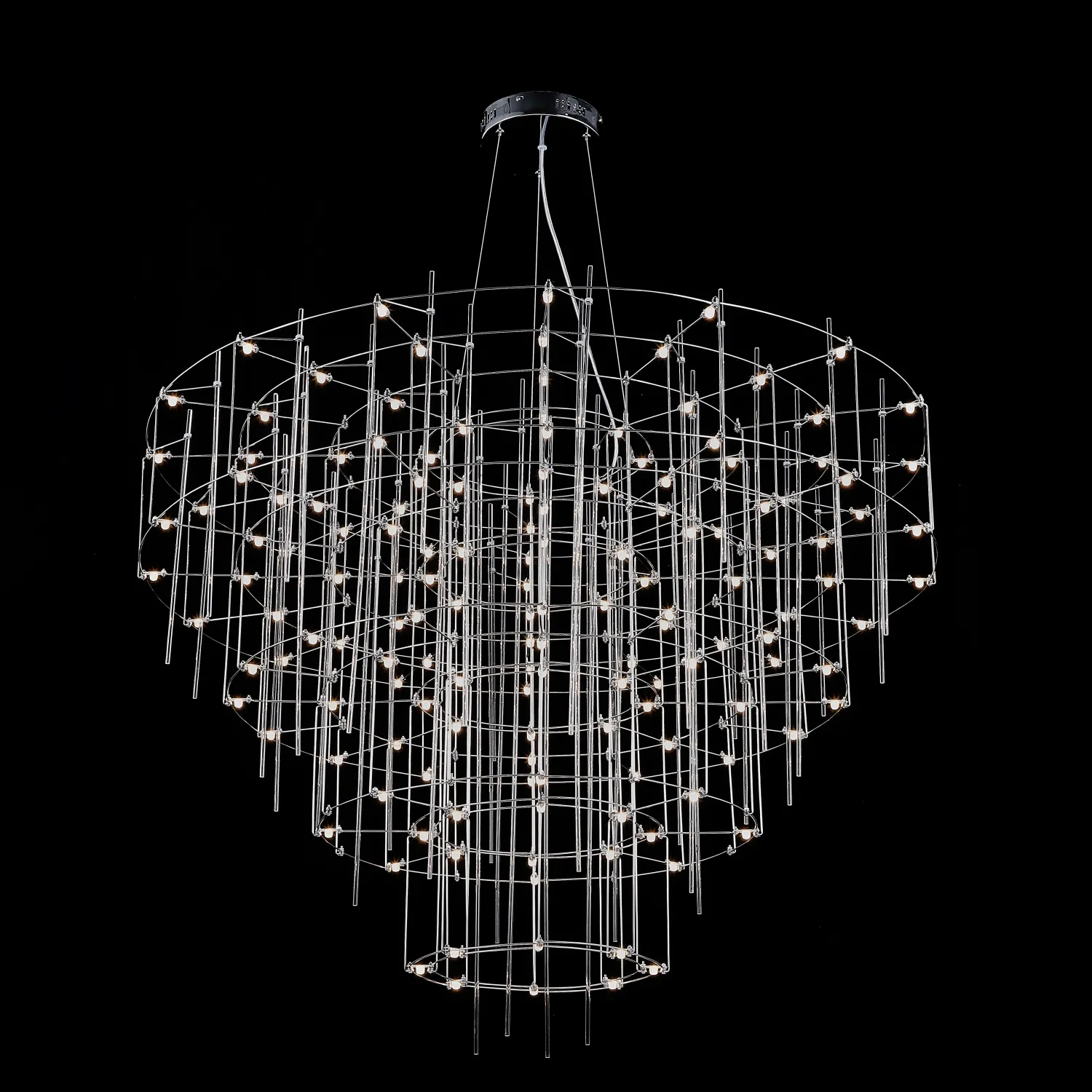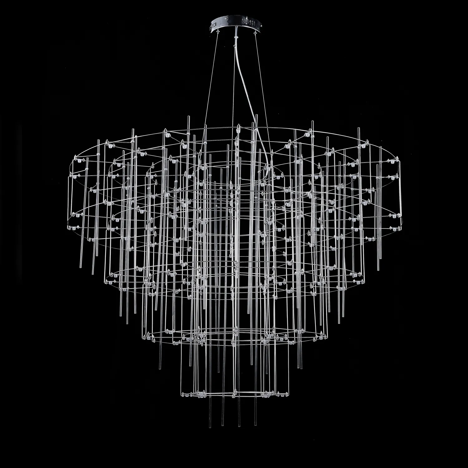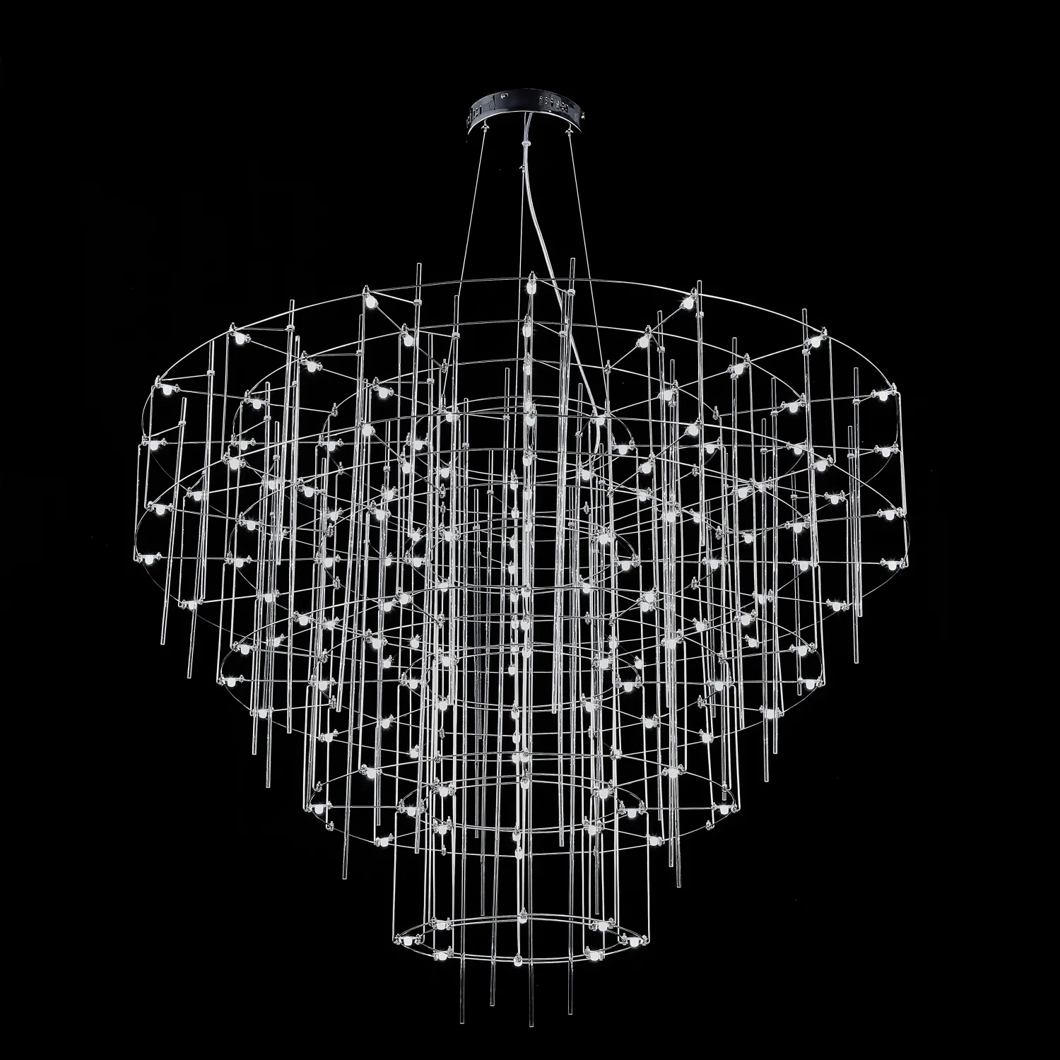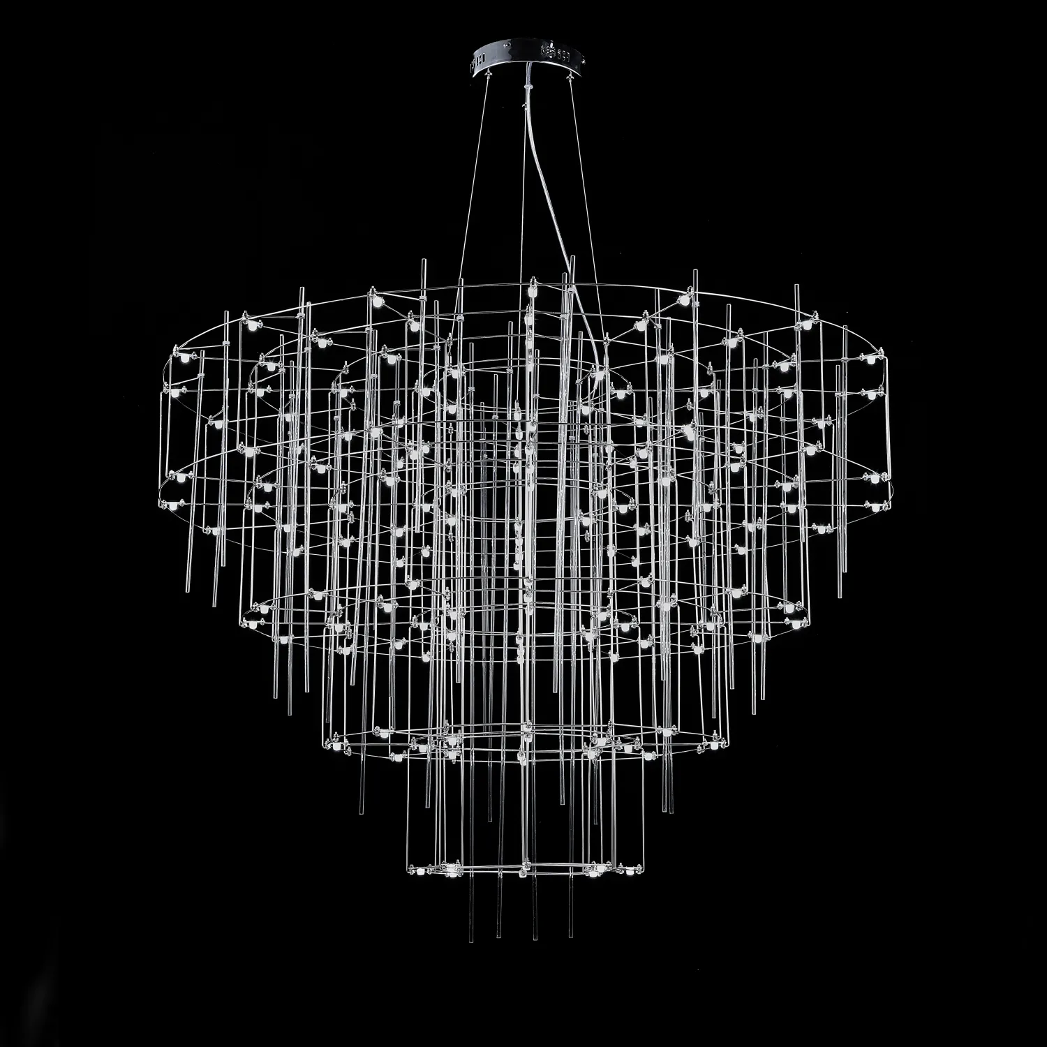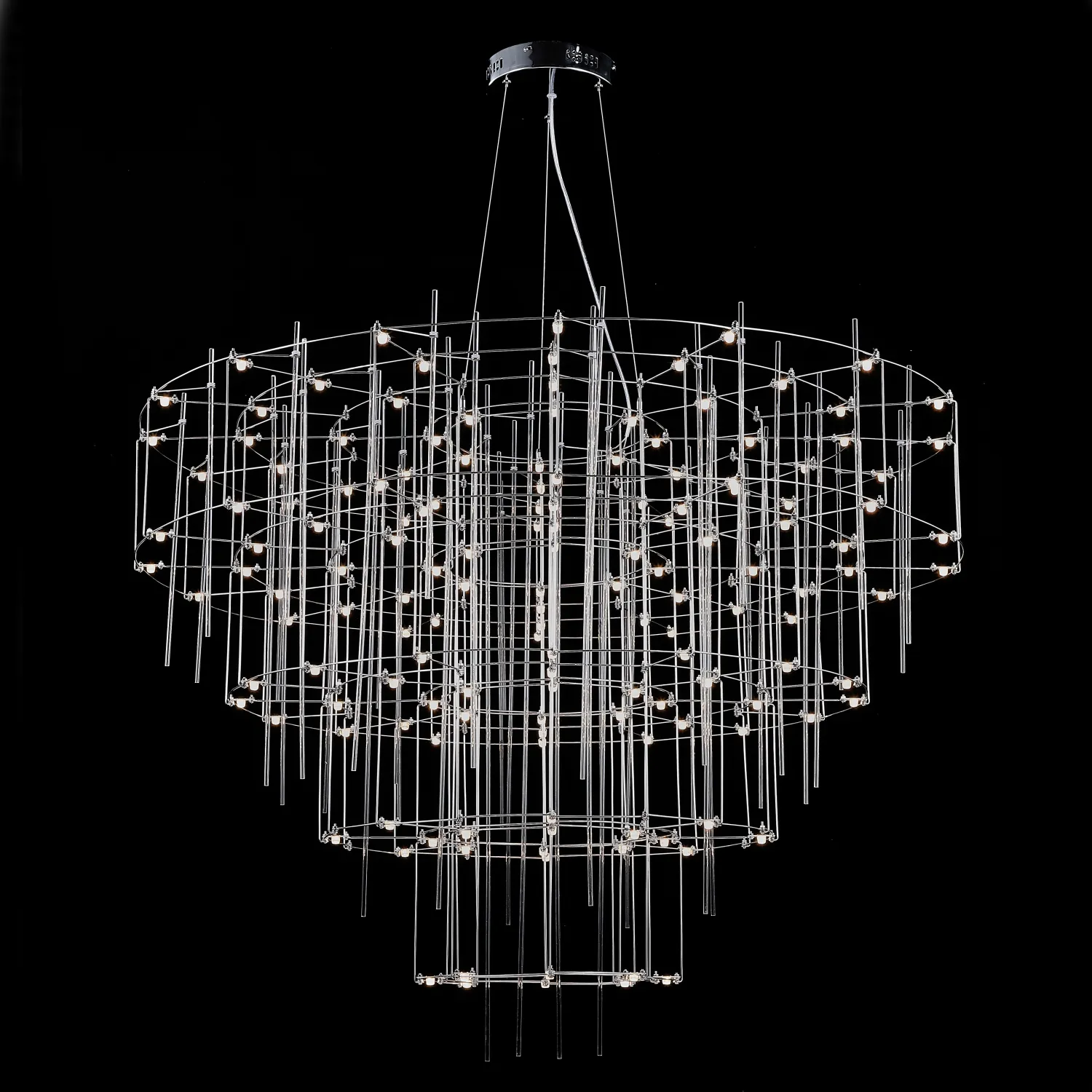 Люстра с точечными светодиодными источниками на серебристом каркасе с декором из стеклянных стержней CHILL A