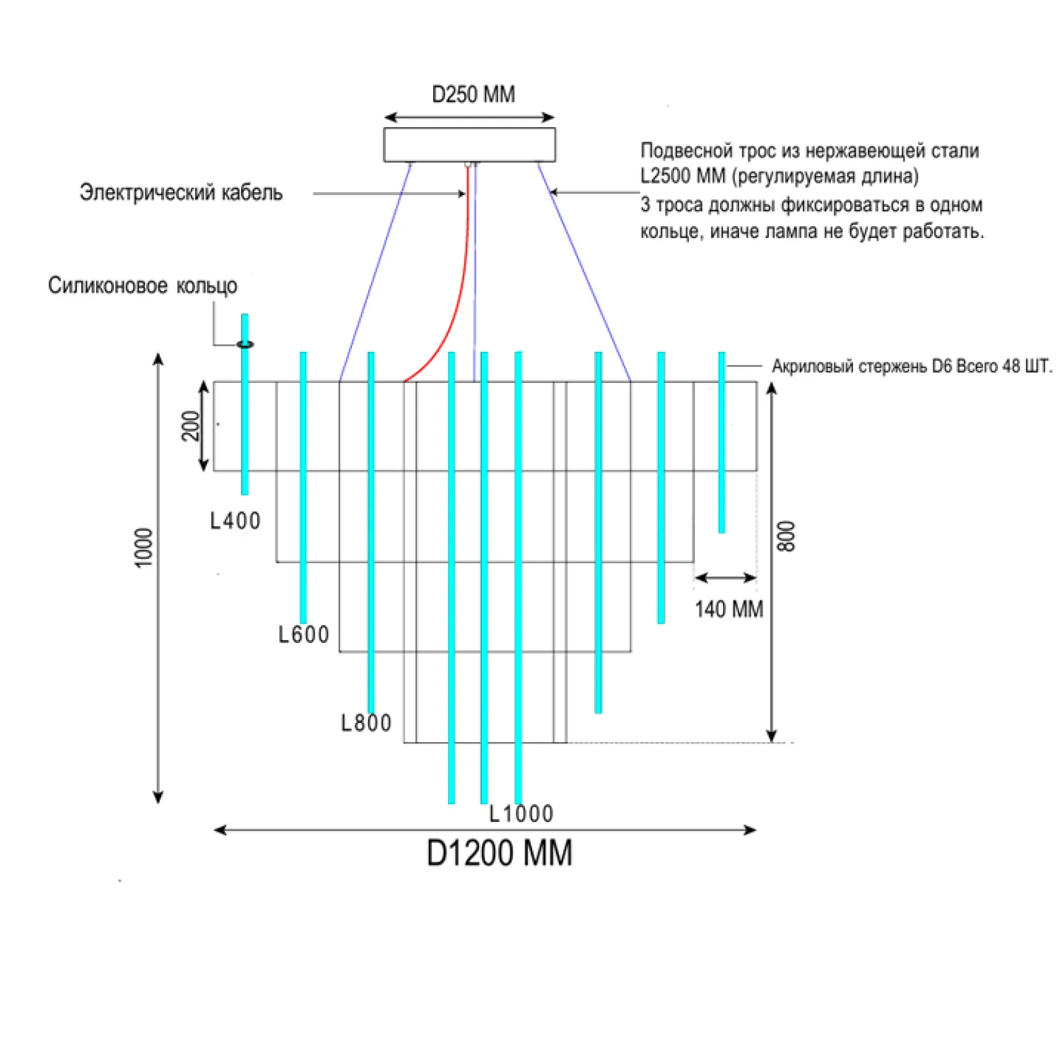Установка этой люстры очень проста и не требует специальных навыков. В комплекте идет все необходимое для монтажа, чтобы вы смогли наслаждаться ее прекрасным светом всего за несколько минут.