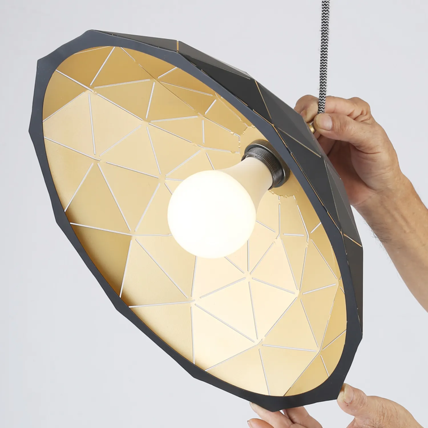 Хотите добавить роскошный и стильный акцент в своем интерьере? Тогда подвесной светильник HOOD D40 Black Gold - идеальный выбор для вас!