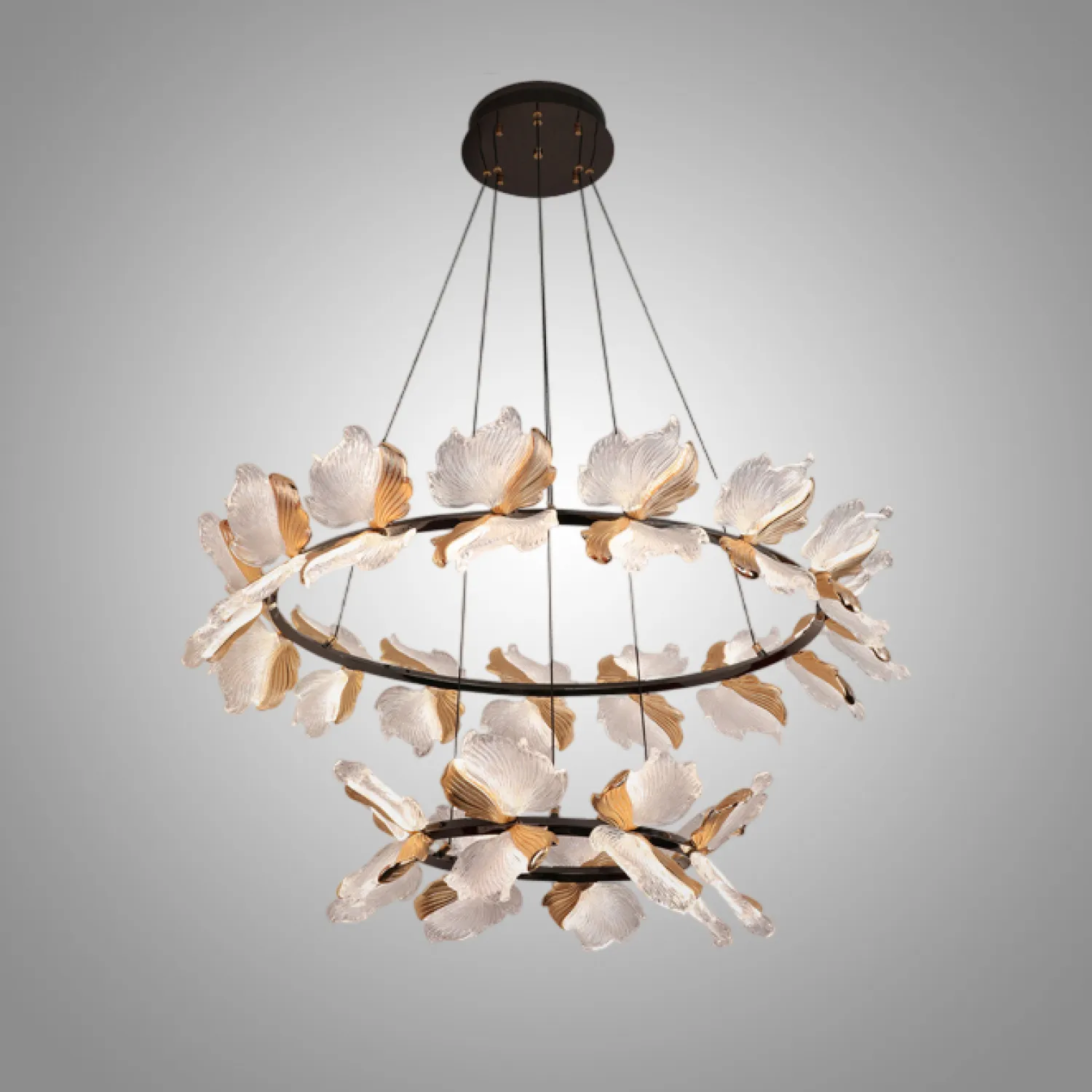 Светильники и люстры из новой серии AUBREY с природными мотивами. Подчеркните красоту стильных листьев уютным светом.