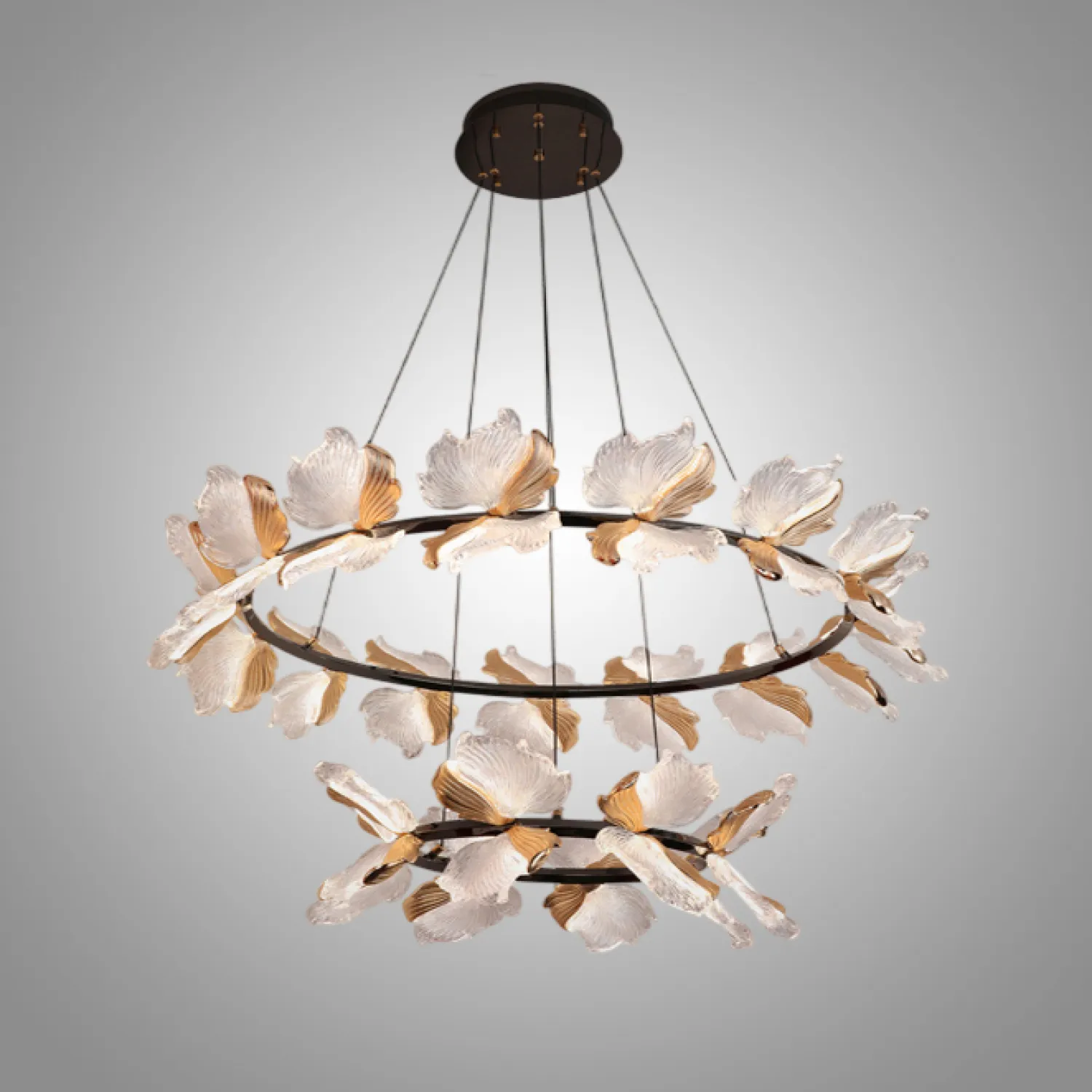 Светильники и люстры из новой серии AUBREY с природными мотивами. Подчеркните красоту стильных листьев уютным светом.