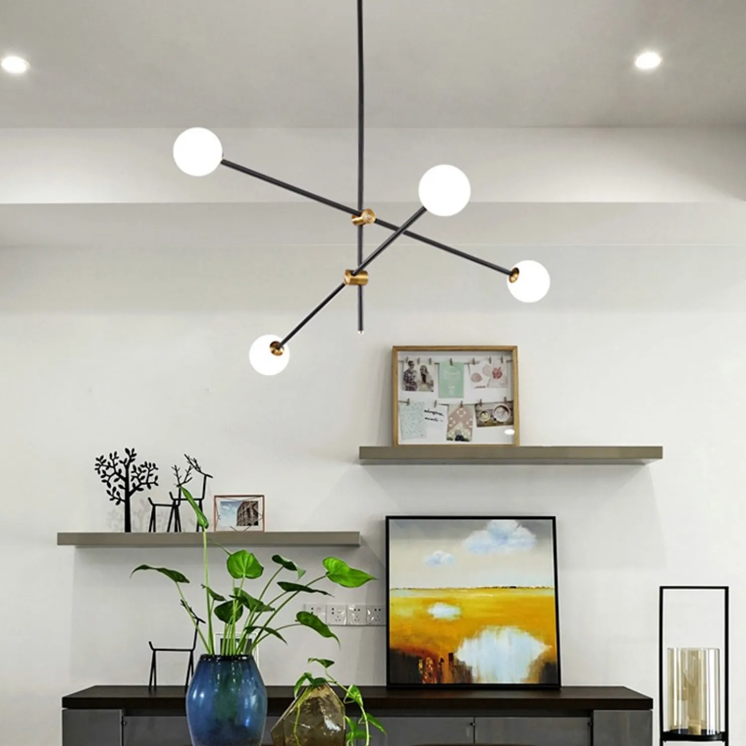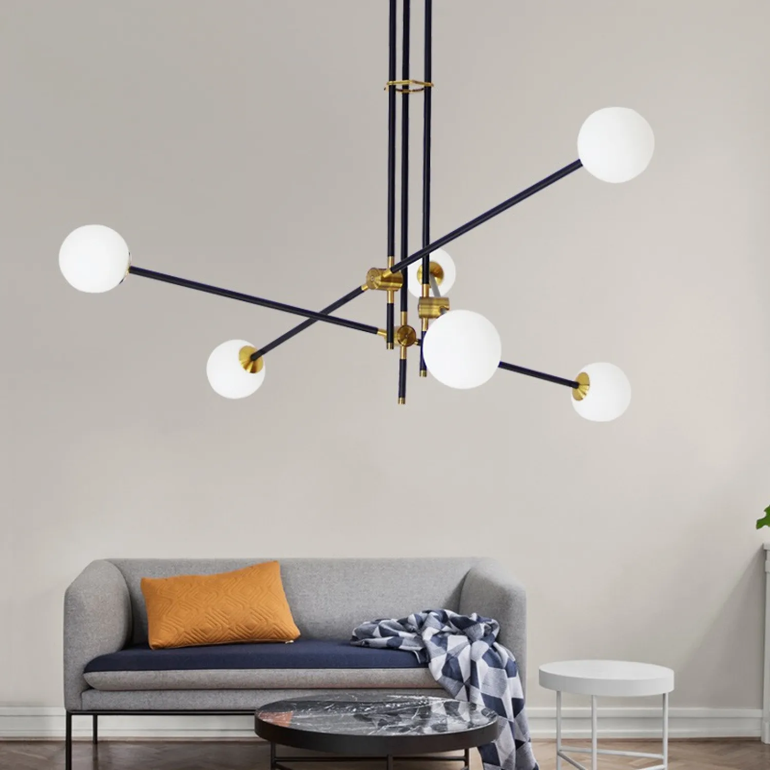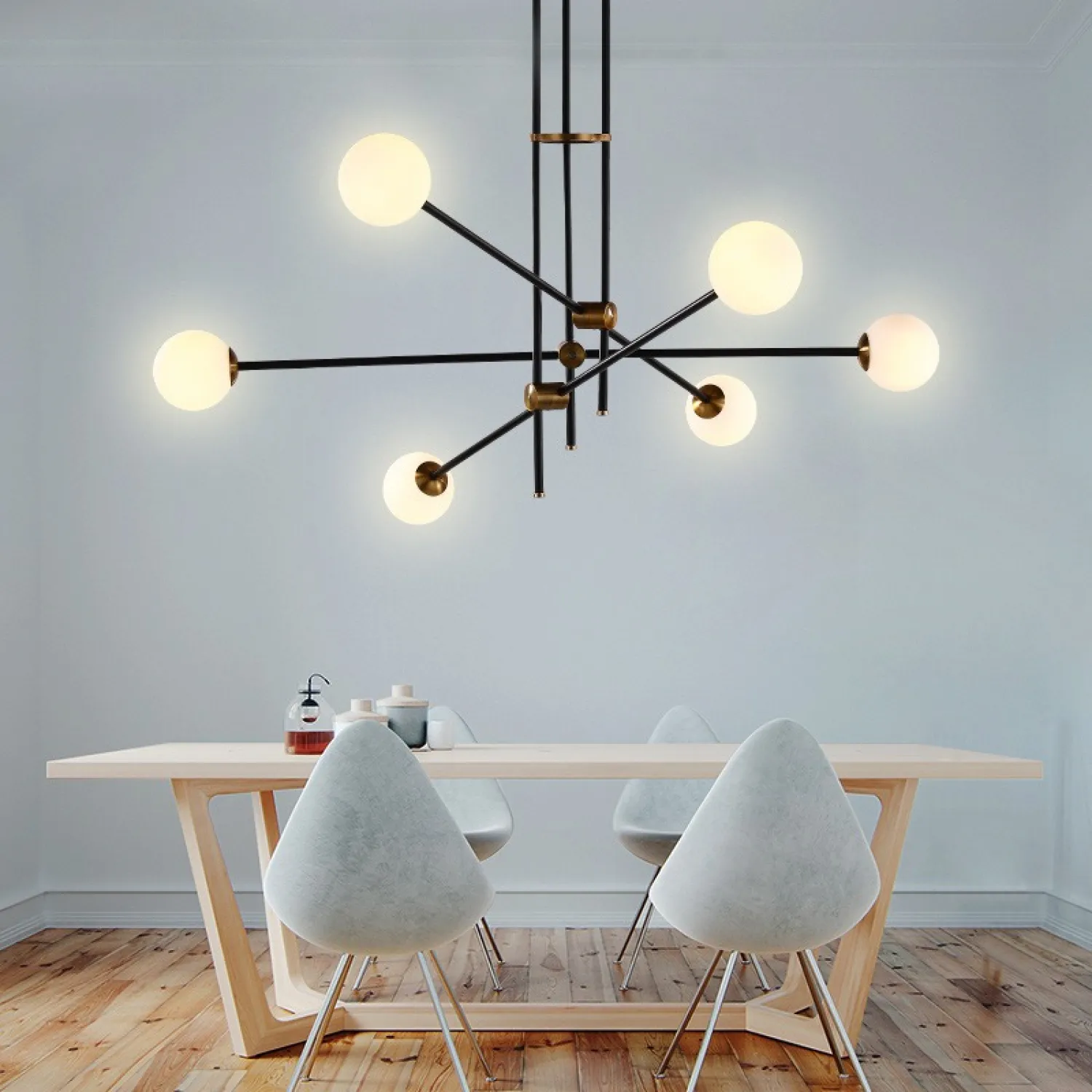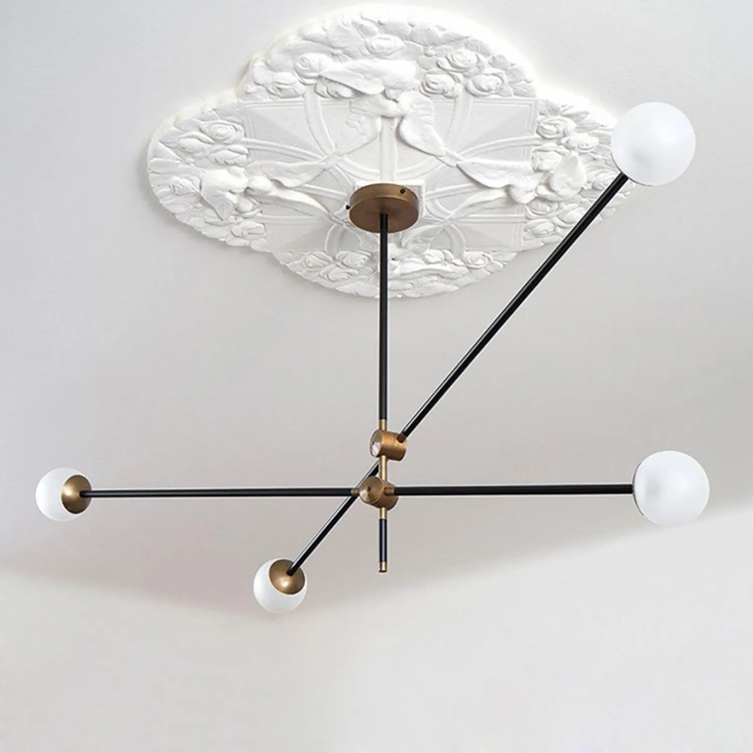 Выпускается в нескольких модификациях от 2 до 6 источников света на каркасе из металлических ассиметричных штанг с регулируемым углом наклона. Люстра Вектор — дизайн в верном направлении!