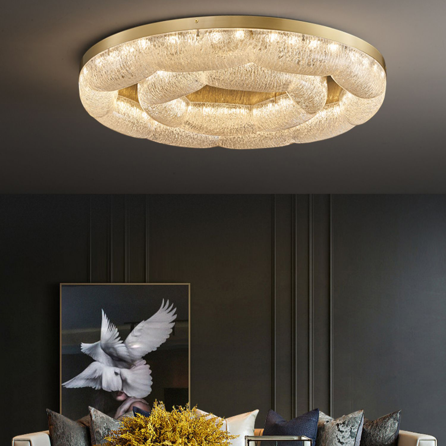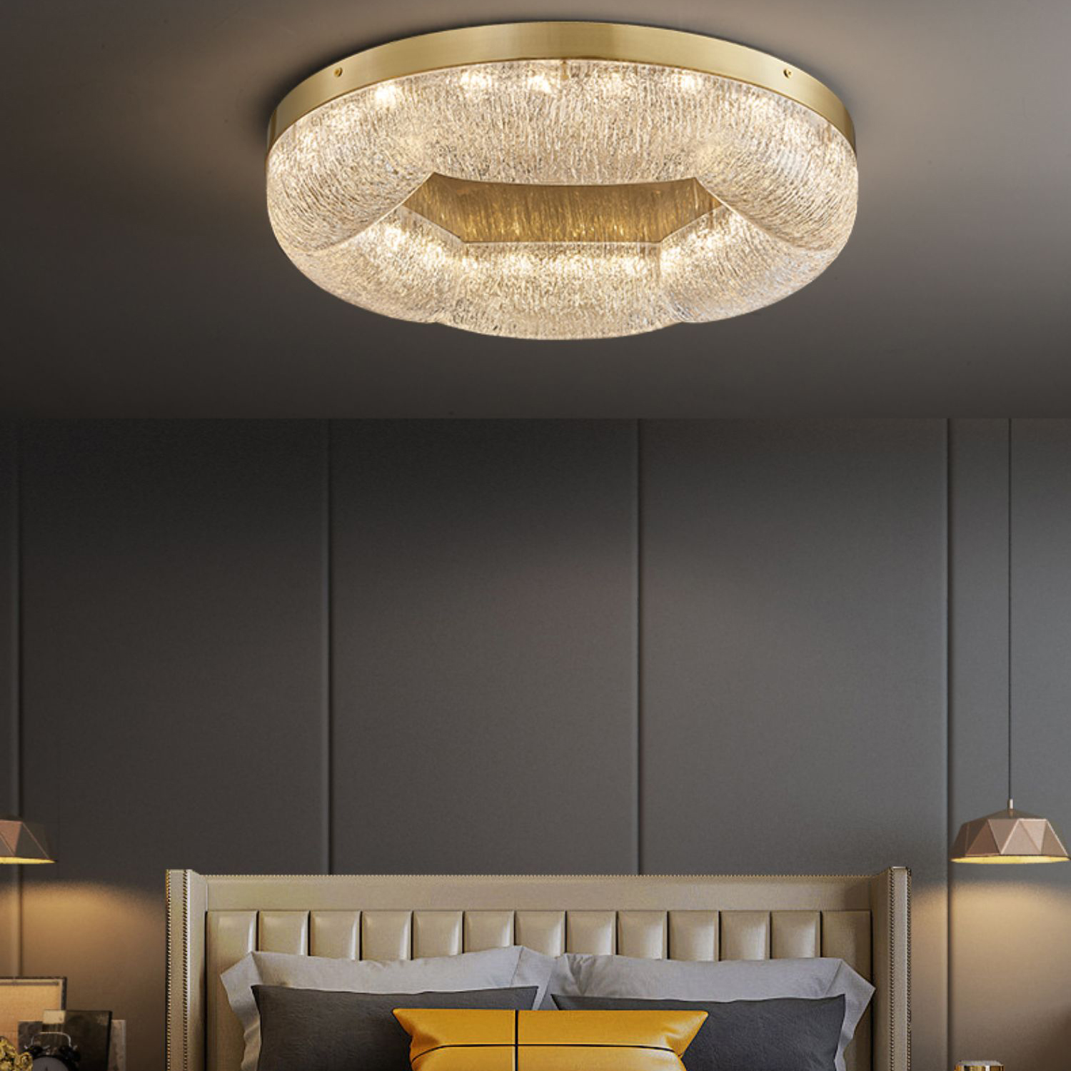 Светильник выпускается в двух модификациях: с пузырьковой текстурой рассеивателя (Тип А) и с рассеивателем с вкраплением частиц золотой фольги (Тип B).