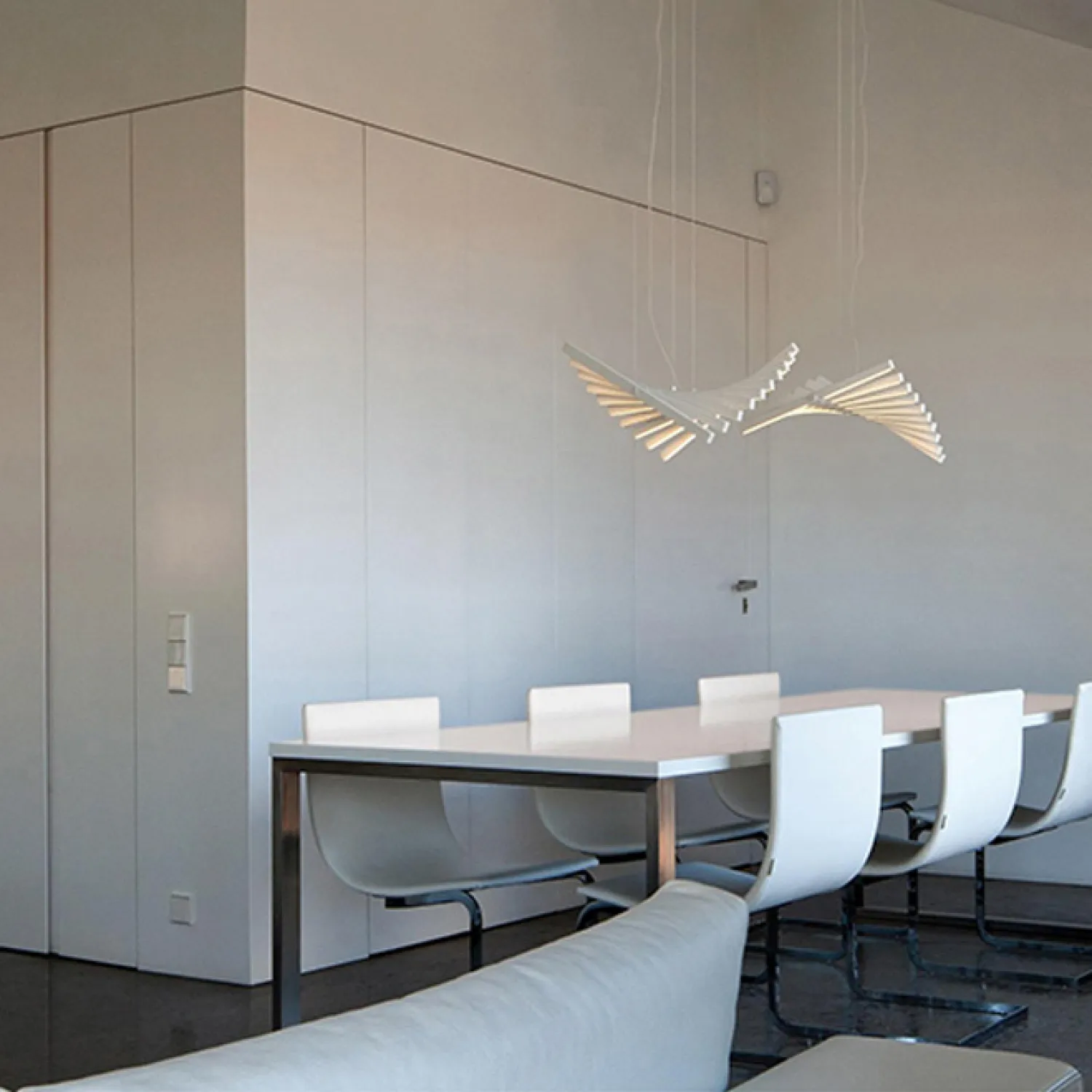 Светодиодные светильники на струнном подвесе с линейными плафонами, перпендикулярно расположенными относительно поворотного основания. Изменяя угол расположения плафонов относительно друг друга можно создавать интересные волнообразные или разнонаправленные структуры. Подвесной светильник RITHM L125 Black - это идеальное решение для создания элегантной и стильной атмосферы в вашем доме. Сочетание черного металла и простого, но изысканного дизайна придаст вашему интерьеру современный шик и эстетическое совершенство. Светильник RITHM L145 Black обладает высоким качеством и надежностью, что делает его идеальным выбором для долговременного использования. Он оснащен энергоэффективной LED-технологией, которая обеспечивает яркое и равномерное освещение, сэкономив при этом электроэнергию. Этот подвесной светильник идеально подходит для использования в гостиной, столовой или спальне, создавая уютную и расслабляющую атмосферу. Вы можете регулировать высоту подвеса, чтобы создать оптимальное освещение для вашего пространства. Подвесной светильник RITHM L125 Black - это не только функциональный предмет освещения, но и стильный акцент, который дополнит ваш интерьер и придаст ему особый шарм. Независимо от того, какой стиль у вас в доме, этот светильник станет элегантным дополнением любого интерьера. Не упустите возможность приобрести подвесной светильник RITHM L125 Black и преобразить ваш дом в уютное и стильное пространство, в котором вы будете чувствовать себя комфортно и расслабленно.