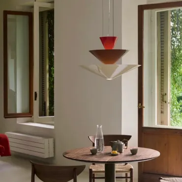 Светильник TRAUSTI сочетает в себе лофт и скандинавский стиль, создавая живую и энергичную атмосферу в интерьере. Его корпус из трех разноцветных элементов — красного, коричневого и молочного — подвешен на металлической струне. Эта композиция наполняет пространство мягким светом. Подвес из металла и акрила с LED-матрицей обеспечивает мягкое и равномерное освещение, идеально подходящее для гостиной, кухни или зала. Светильник отлично впишется в просторные комнаты с современным или индустриальным дизайном. Яркие акценты добавляют свежести и энергии в интерьер. Обновите свой дизайн с помощью TRAUSTI и создайте уютную, стильную атмосферу в доме или кафе.