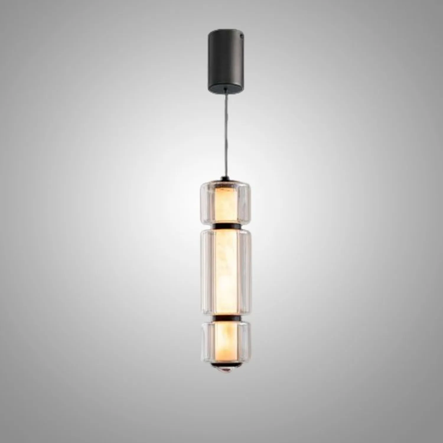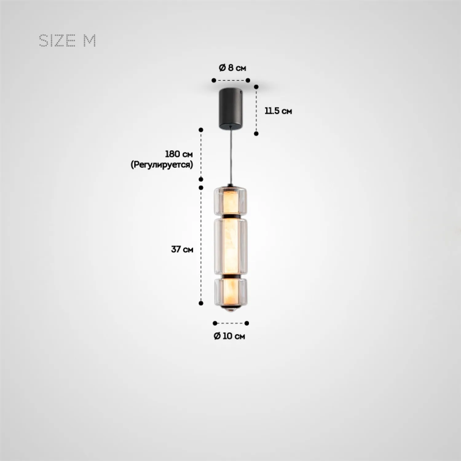 Размеры светильника (Ø 10 см и высота 37 см) позволяют использовать его над обеденными зонами или в гостиной. Он создает благородную и уютную обстановку. Модули из стекла с переливами и точечный LED источник обеспечивают равномерное освещение, подчеркивая оригинальность дизайна.