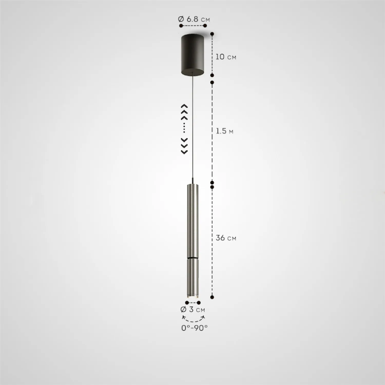 Подвесной светильник серии NION выполнен из матового серого металла и акрила. Его удлинённый цилиндрический корпус можно регулировать, чтобы направлять свет. Этот стильный аксессуар идеально впишется в интерьер в стиле скандинавского минимализма, модерн или лофт, обеспечивая мягкое и рассеянное освещение для гостиной, кухонной зоны или обувного уголка. Благодаря компактным размерам (диаметр 3 см и высота 36 см), светильник не перегружает пространство. Длина подвеса составляет 150 см, что делает его удобным для помещений с высокими потолками. Светильник оснащён LED матрицей с тёплым светом мощностью 5W, создавая уютную атмосферу для отдыха или работы. Лёгкий и функциональный дизайн, а также возможность регулировки делают его модным элементом интерьера.