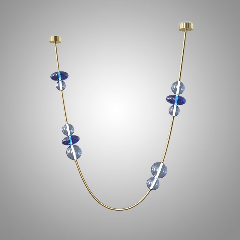 Подвесной светильник на U-образном каркасе с ожерельем из стеклянных шаров в голубых и белых тонах создает атмосферу уюта и гармонии. Легкость и прозрачность воздуха, вытянутая форма и штрихи в стиле арт-деко подчеркивают современный минимализм. Светильник идеально вписывается в интерьеры в стиле лофт, скандинавском или модерн, добавляя им изысканности. Мягкое LED-освещение создает комфорт, а сочетание цветов придает пространству свежесть и чистоту. Этот светильник украсит светлые гостиные, кухни или зоны отдыха, создавая ощущение волшебного небесного сияния.