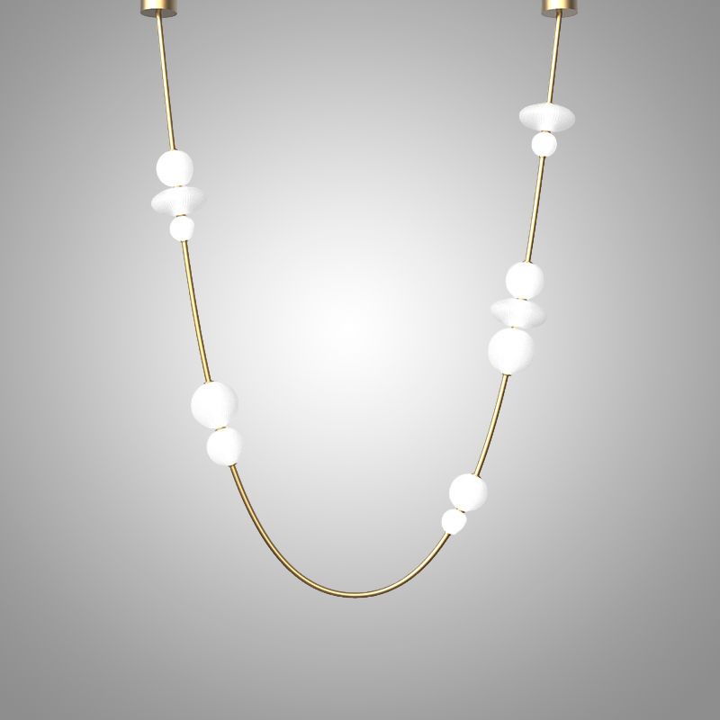 Подвесной светильник на U-образном каркасе с ожерельем из стеклянных шаров в голубых и белых тонах создает атмосферу уюта и гармонии. Легкость и прозрачность воздуха, вытянутая форма и штрихи в стиле арт-деко подчеркивают современный минимализм. Светильник идеально вписывается в интерьеры в стиле лофт, скандинавском или модерн, добавляя им изысканности. Мягкое LED-освещение создает комфорт, а сочетание цветов придает пространству свежесть и чистоту. Этот светильник украсит светлые гостиные, кухни или зоны отдыха, создавая ощущение волшебного небесного сияния.