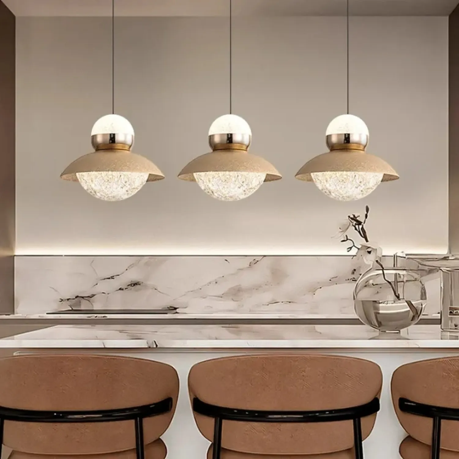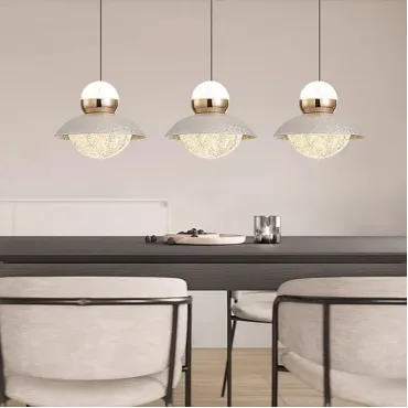 Подвесной светильник SVEIN выполнен из металла и акрила и напоминает ледяные кристаллы, придавая интерьеру легкость и свежесть. Его серебряный купол и декоративный шаровидный источник света создают утонченную композицию, которая играет с трехцветным освещением, изменяя атмосферу в помещении. Этот светильник идеально впишется в гостиную или спальню, гармонично дополняя современные и минималистичные интерьеры, добавляя утонченную роскошь и элегантность. Длина подвеса составляет 2 метра, что позволяет использовать его для акцентирования высоких потолков или выделения зоны отдыха. Устройство обеспечивает мягкое и диффузное освещение, не перегружая пространство.