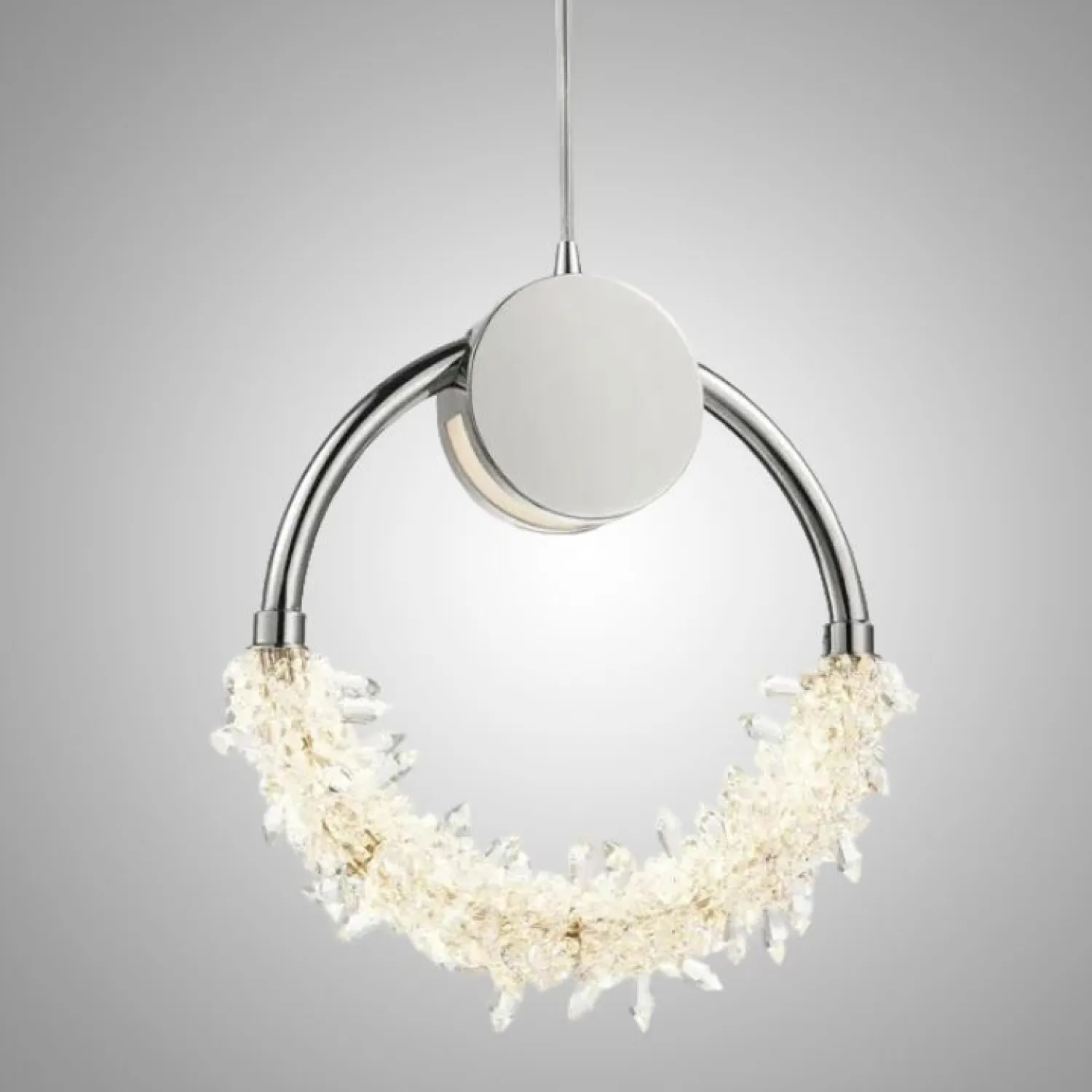 Подвесной светильник ALIANA, выполненный из латуни с хрустальными элементами и светодиодной LED матрицей, придает интерьеру атмосферу утонченной современности и изысканной элегантности. Кольцевой каркас светильника украшен мерцающими кристаллами, которые мягко рассеивают теплый свет, создавая уют и комфорт в помещении. Этот светильник идеально подойдет для современной гостиной, стильной кухни или уютной спальни в стиле лофт или модерн, выгодно подчеркивая высокие потолки и лаконичность мебели. Современный дизайн и использование премиальных материалов сделают ваш дом более уютным и ярким. Обновите интерьер, выбрав светильник ALIANA, и создайте атмосферу роскоши и комфорта.