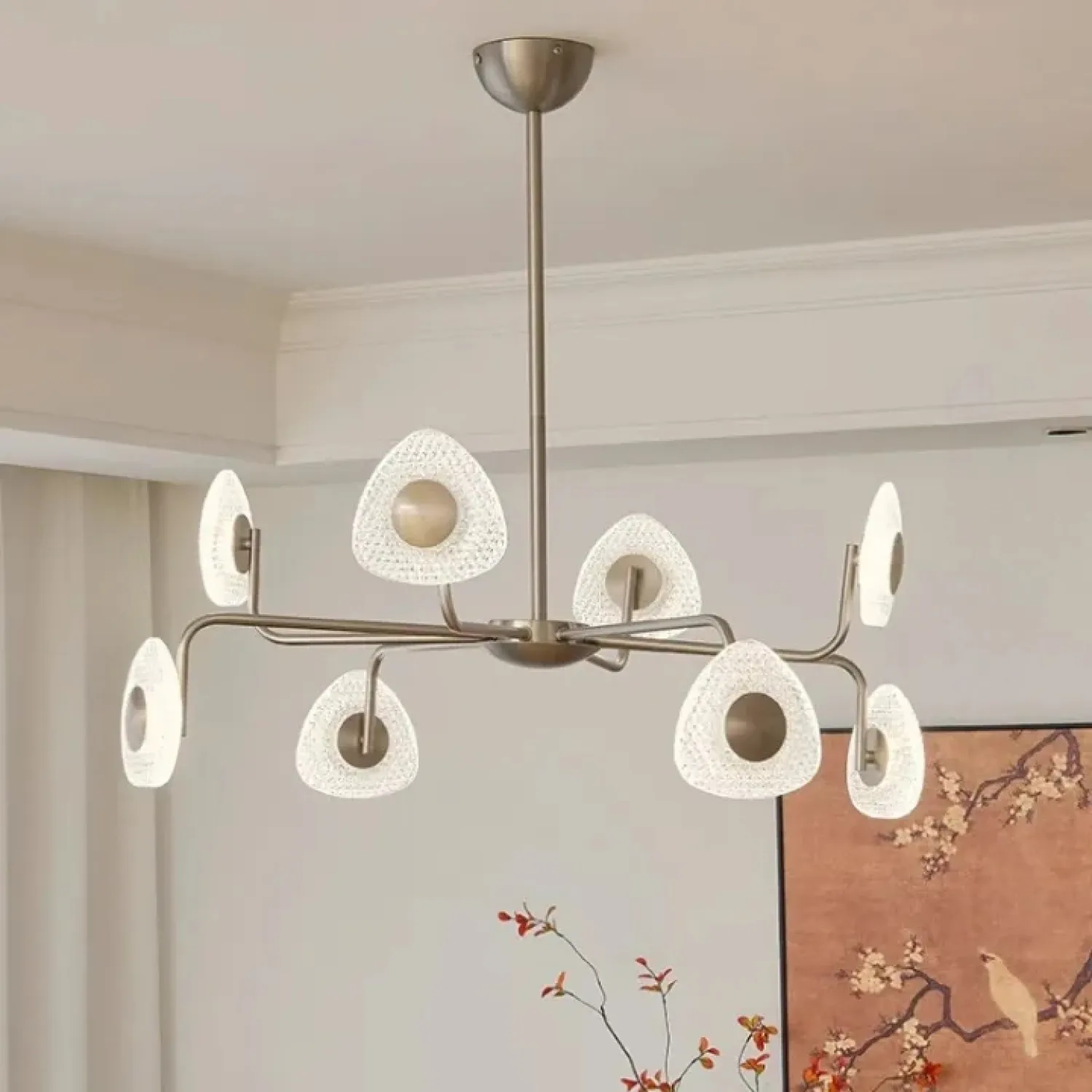 Роскошная люстра из серии BODEL станет ярким акцентом в современном интерьере, объединяя черты скандинавского минимализма и индустриального лофта. Ее металлический каркас в оттенке розового золота гармонично впишется в любую комнату, а треугольные акриловые рассеиватели создадут мягкое и равномерное освещение.Благодаря трехцветному LED освещению, она создаст комфортную атмосферу для любого времени суток, придавая интерьеру уют и стиль.