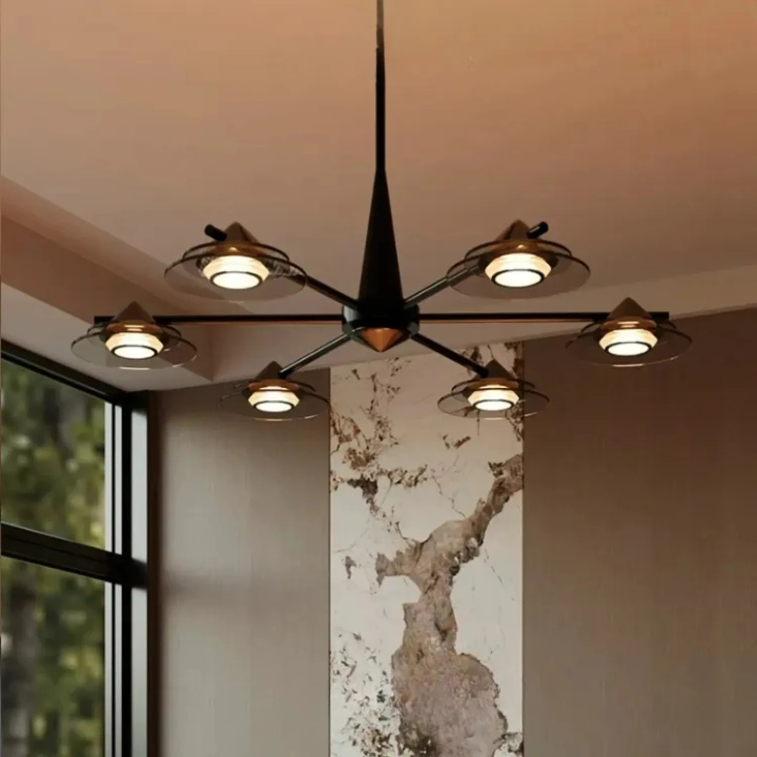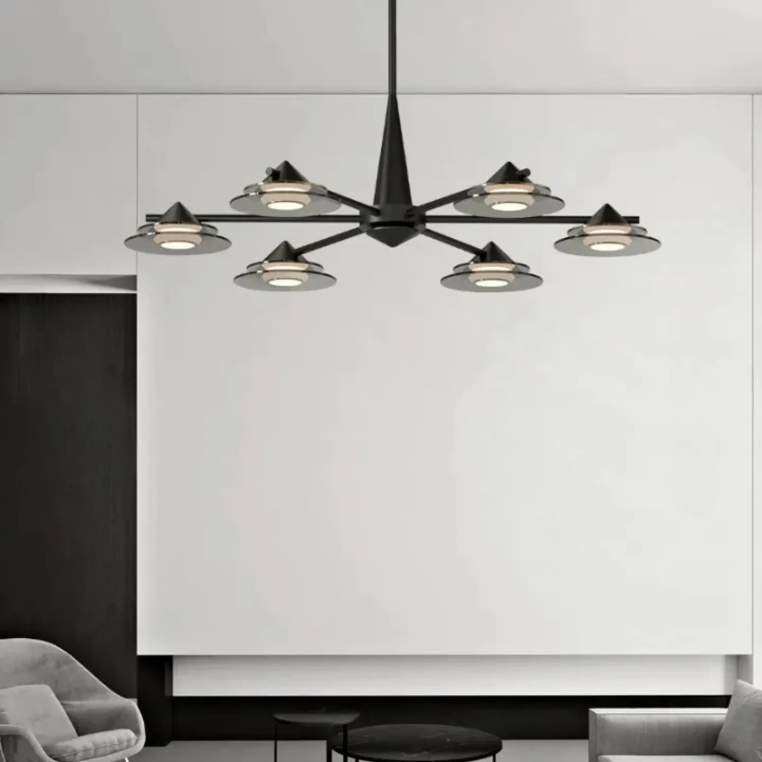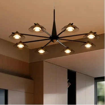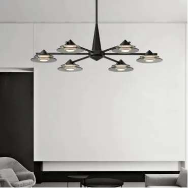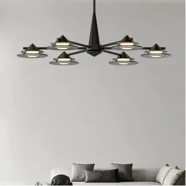 Современная люстра GORM-CH из линейки светодиодных светильников станет украшением интерьера. Лучевой металлический каркас и плафоны из дымчатого стекла в форме конусов создают атмосферу минимализма и элегантности. Мягкий диффузный свет с тремя цветовыми режимами равномерно освещает большую площадь. Люстра идеально подходит для гостиных в стиле лофт или скандинавском дизайне. Черный корпус и дымчатые стеклянные элементы добавляют интерьеру современные акценты. Благодаря растянутым размерам и регулируемой стойке, освещение легко адаптируется к любому пространству.