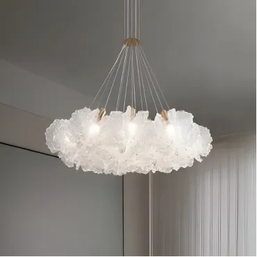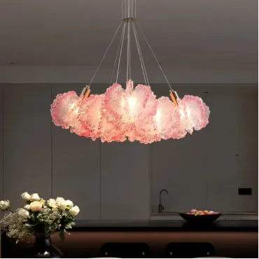 Модель PETALS-CH станет изысканным акцентом в интерьере, наполняя пространство мягким и рассеянным светом. Она великолепно впишется в гостиную или столовую, оформленные в скандинавском или классическом стиле. Люстра изготовлена из металла и акрила с прозрачными рассеивателями, которые напоминают лепестки цветка. Это придает комнате легкость и естественную гармонию. Золотистая отделка корпуса и декоративные элементы добавляют уюта и тепла. Длина подвеса до 150 см позволяет использовать люстру в помещениях с высокими потолками, создавая эффект объемного настенного украшения. Семь ламп с цоколем E14 и мощностью 112 Вт обеспечивают яркое и равномерное освещение, не перегружая пространство.