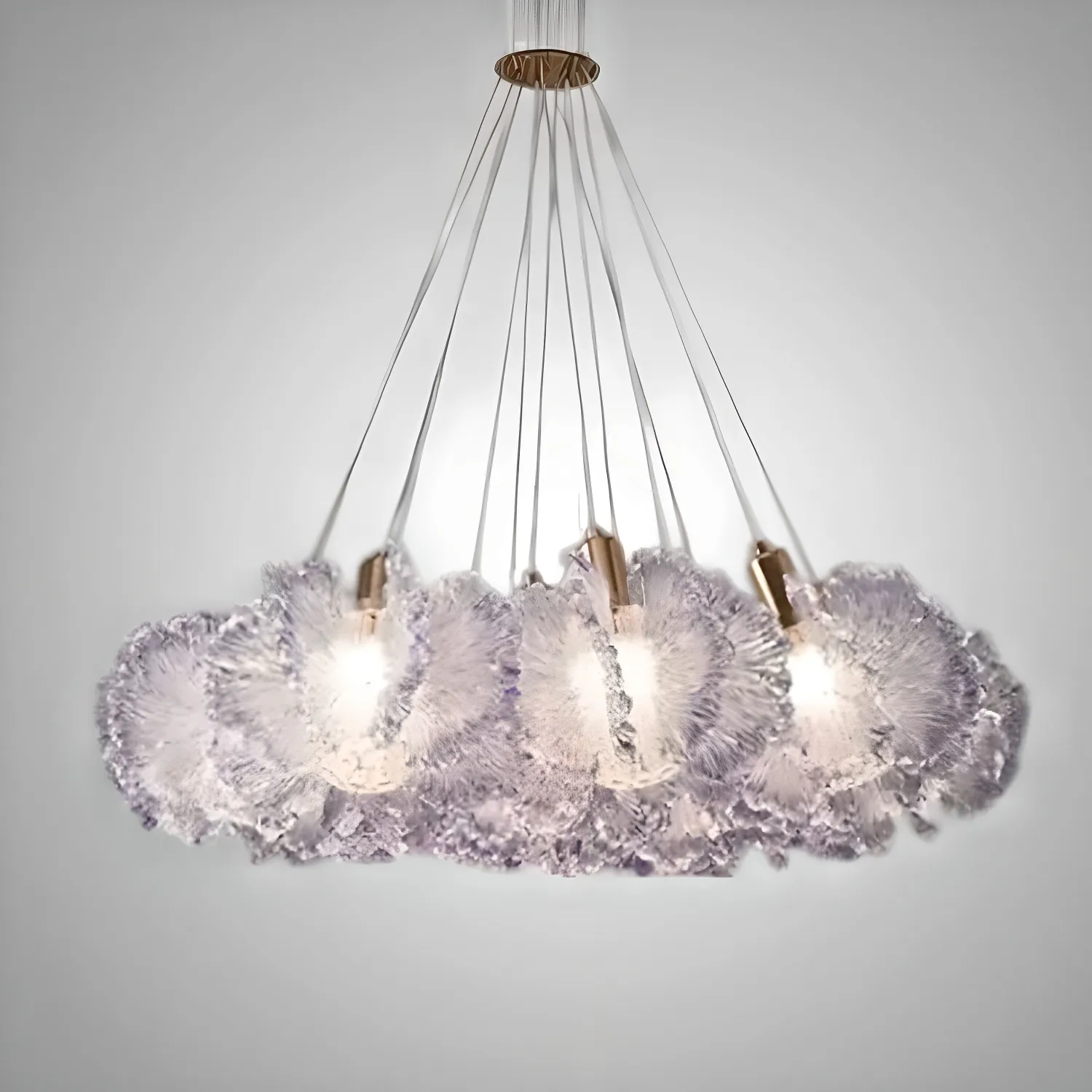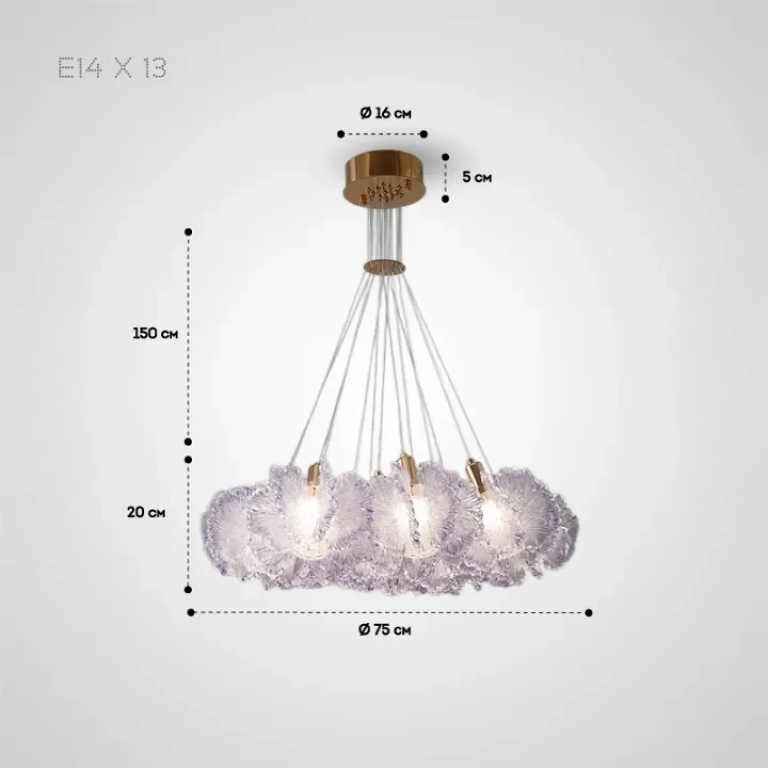Модель PETALS-CH станет изысканным акцентом в интерьере, наполняя пространство мягким и рассеянным светом. Она великолепно впишется в гостиную или столовую, оформленные в скандинавском или классическом стиле. Люстра изготовлена из металла и акрила с прозрачными рассеивателями, которые напоминают лепестки цветка. Это придает комнате легкость и естественную гармонию. Золотистая отделка корпуса и декоративные элементы добавляют уюта и тепла. Длина подвеса до 150 см позволяет использовать люстру в помещениях с высокими потолками, создавая эффект объемного настенного украшения. Семь ламп с цоколем E14 и мощностью 112 Вт обеспечивают яркое и равномерное освещение, не перегружая пространство.