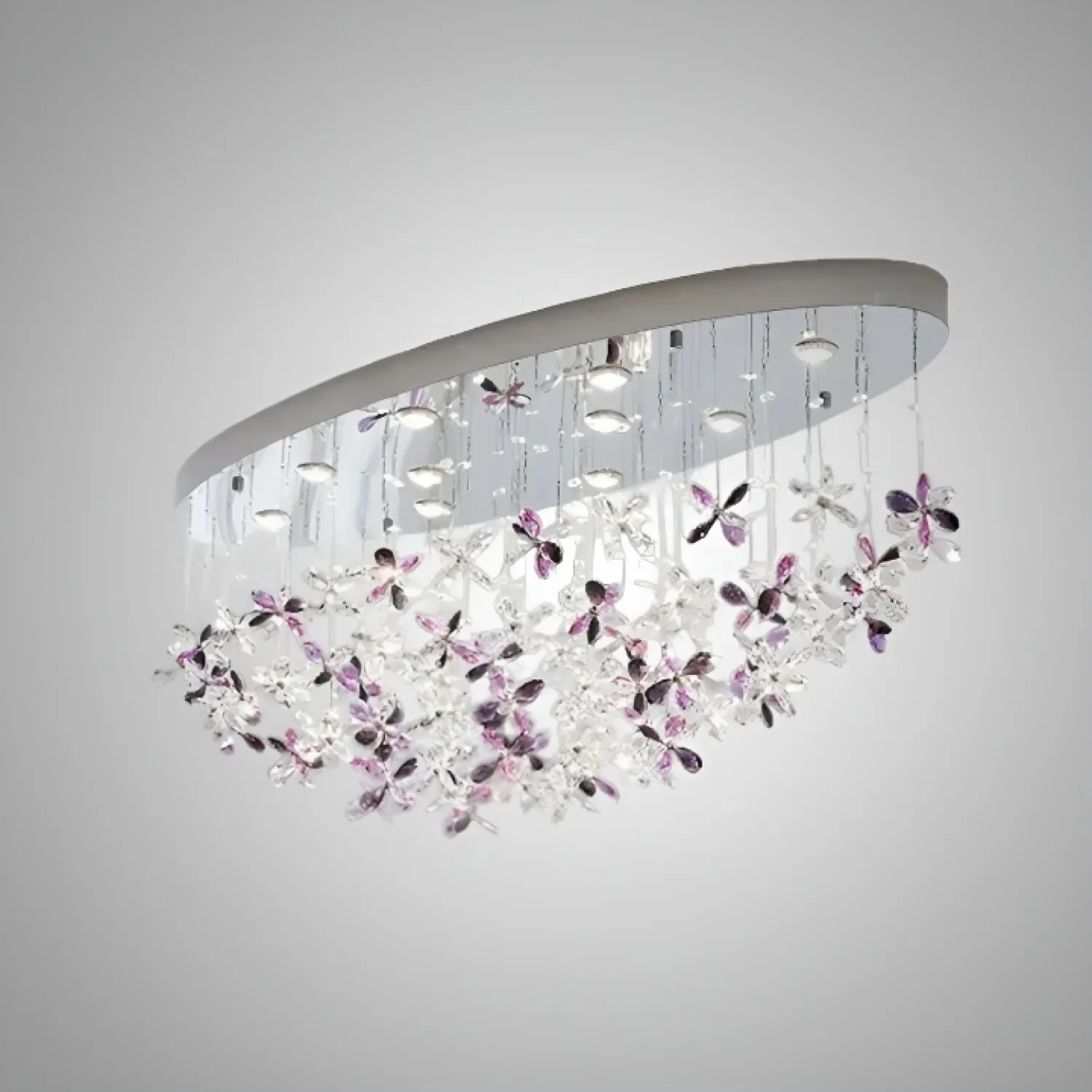 Дизайнерская люстра CHARA AMETHYST IN из металла и хрусталя в хромированном цвете добавит изысканности интерьеру в стиле лофт, скандинавском или классическом. Уникальная форма с подвесными кристаллами создает мягкое освещение. Подходит для просторных помещений, подчеркивая качество материалов и современную светодиодную технологию с трехцветным RGB-светом. Идеально для интерьеров со светодиодами, создавая уютную атмосферу.
