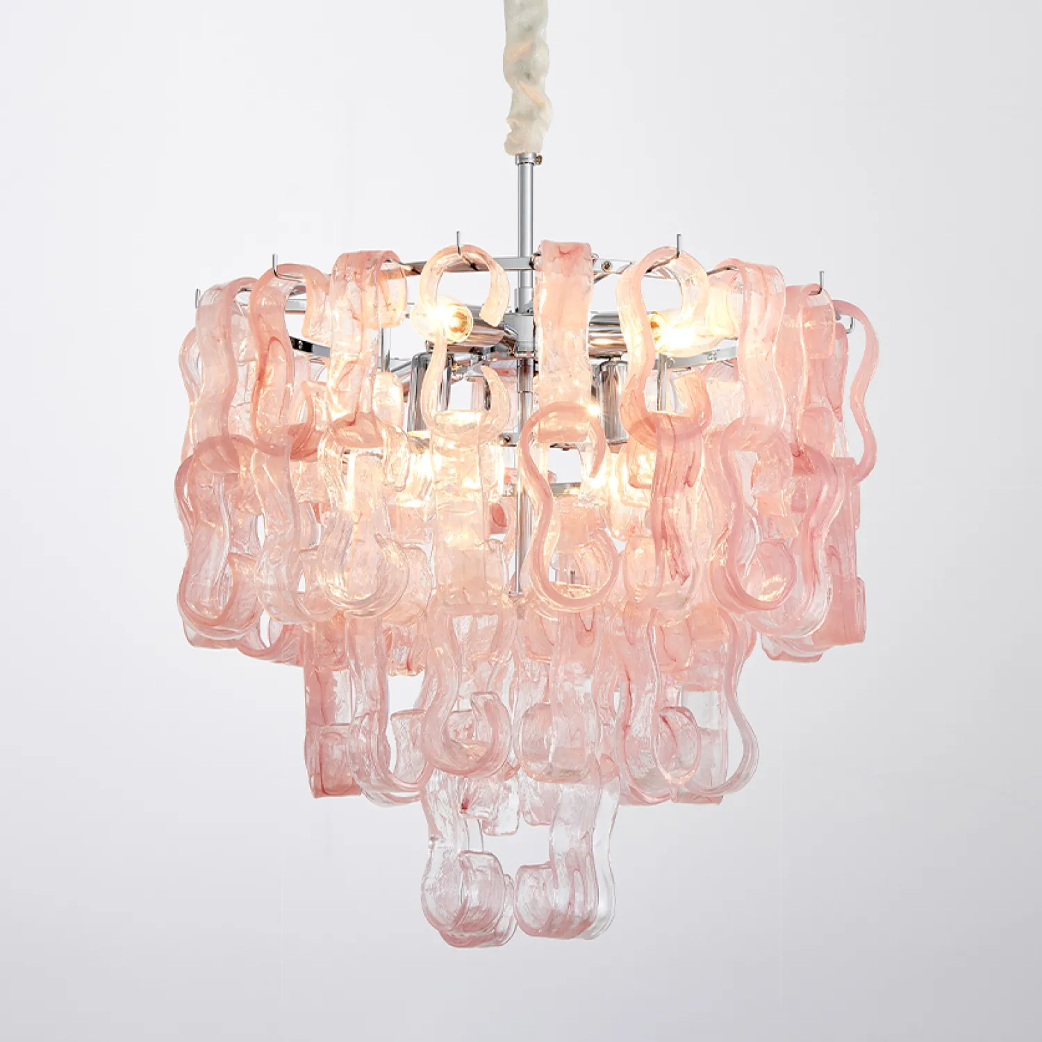 Модель ANTERO-PINK добавляет легкость и гармонию в интерьер. Она идеально подходит для современных минималистичных домов или уютных гостиных в скандинавском или лофт-стиле. Многоярусный абажур из стеклянных подвесок создает мягкий, рассеянный свет, наполняя пространство теплом и уютом.
