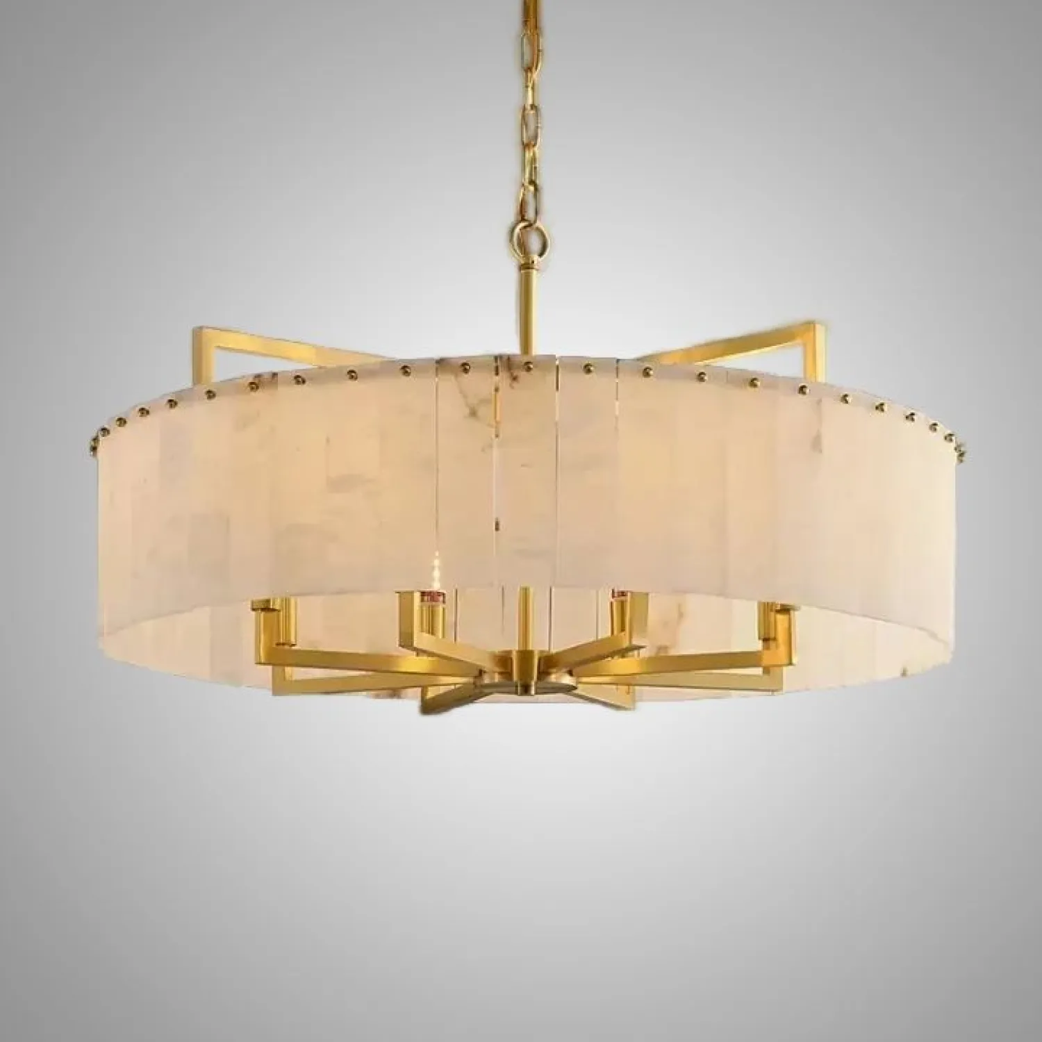 Люстра ADINA-MARBLE, изготовленная из латунных деталей и мраморных пластин, придает интерьеру современный и элегантный вид, гармонично вписываясь в просторные гостиные или столовые в стиле модерн. Благодаря кольчатому абажуру из мраморных прямоугольников и мягкому рассеянному свету, помещение наполняется уютной и ненавязчивой атмосферой, подчеркивая статусность пространства. Этот высококачественный светильник легко интегрируется в интерьер, ненавязчиво выделяясь своей изысканностью и качеством материалов.