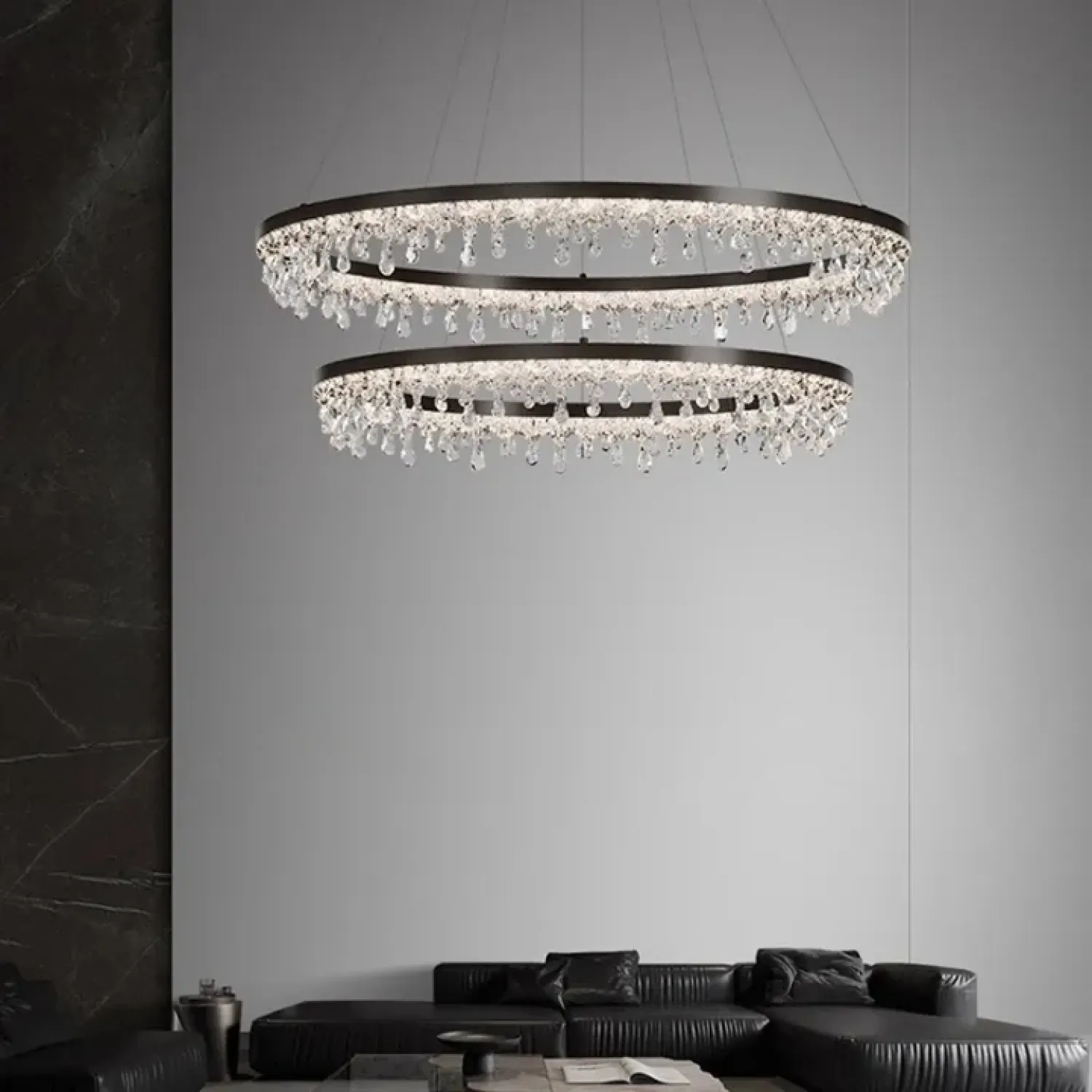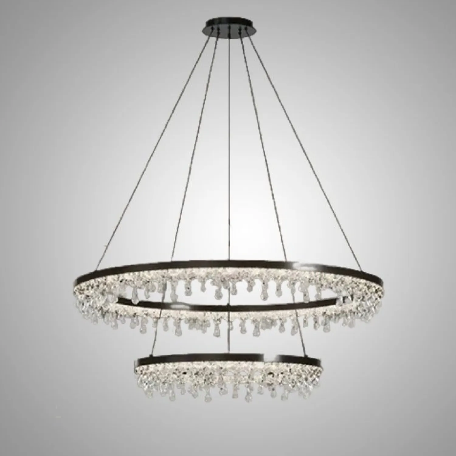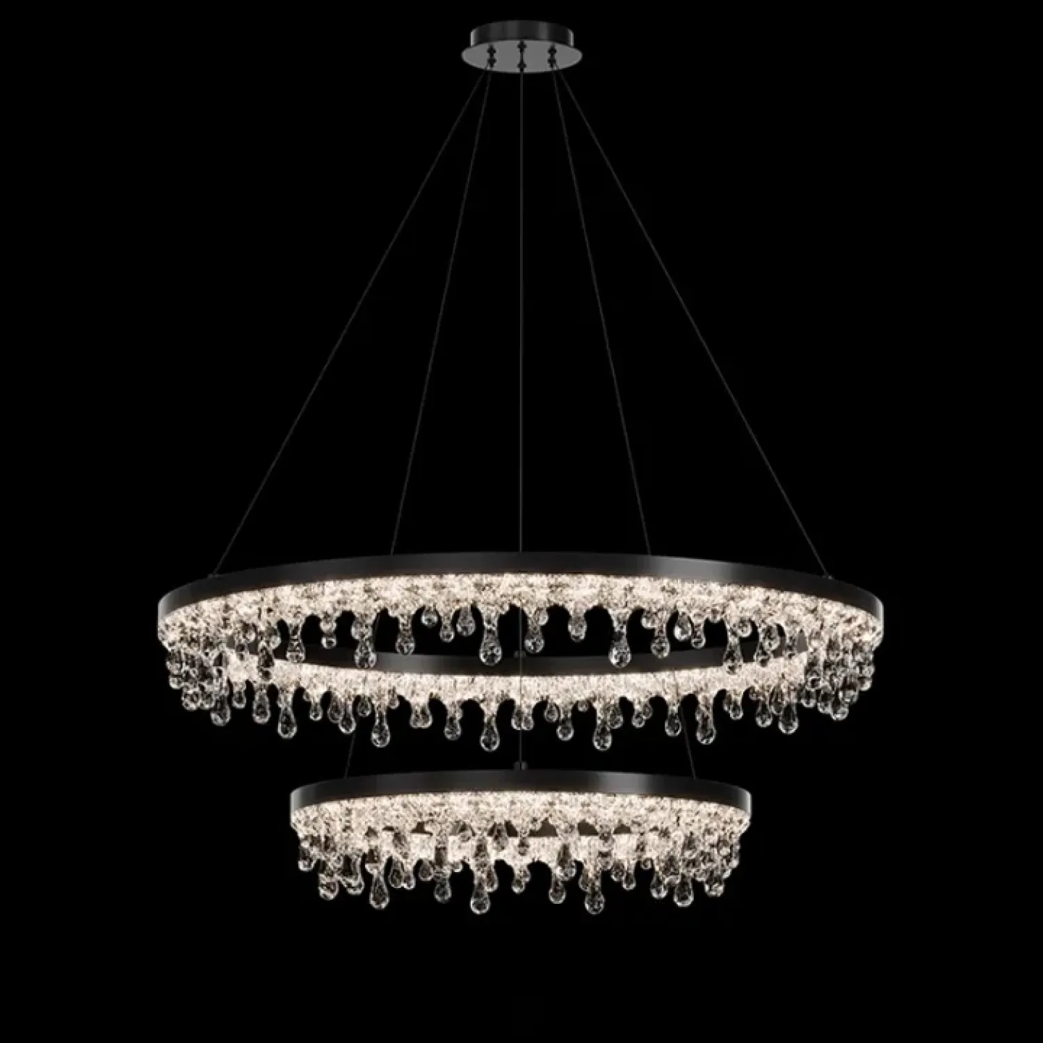 Люстра ANDRUS с каплевидным декором из акрилового стекла станет ярким акцентом в современном интерьере. Этот кольцевой светильник, выполненный из металла и акрила с черным корпусом, мягко рассеивает свет, создавая уютную атмосферу. Он идеально подходит для гостиных или светлых детских комнат. Трехцветная LED-матрица мощностью наполняет пространство теплом и легкостью, гармонично вписываясь в минималистский или классический дизайн. Благодаря регулируемому креплению, высоту светильника можно менять до 150 см.