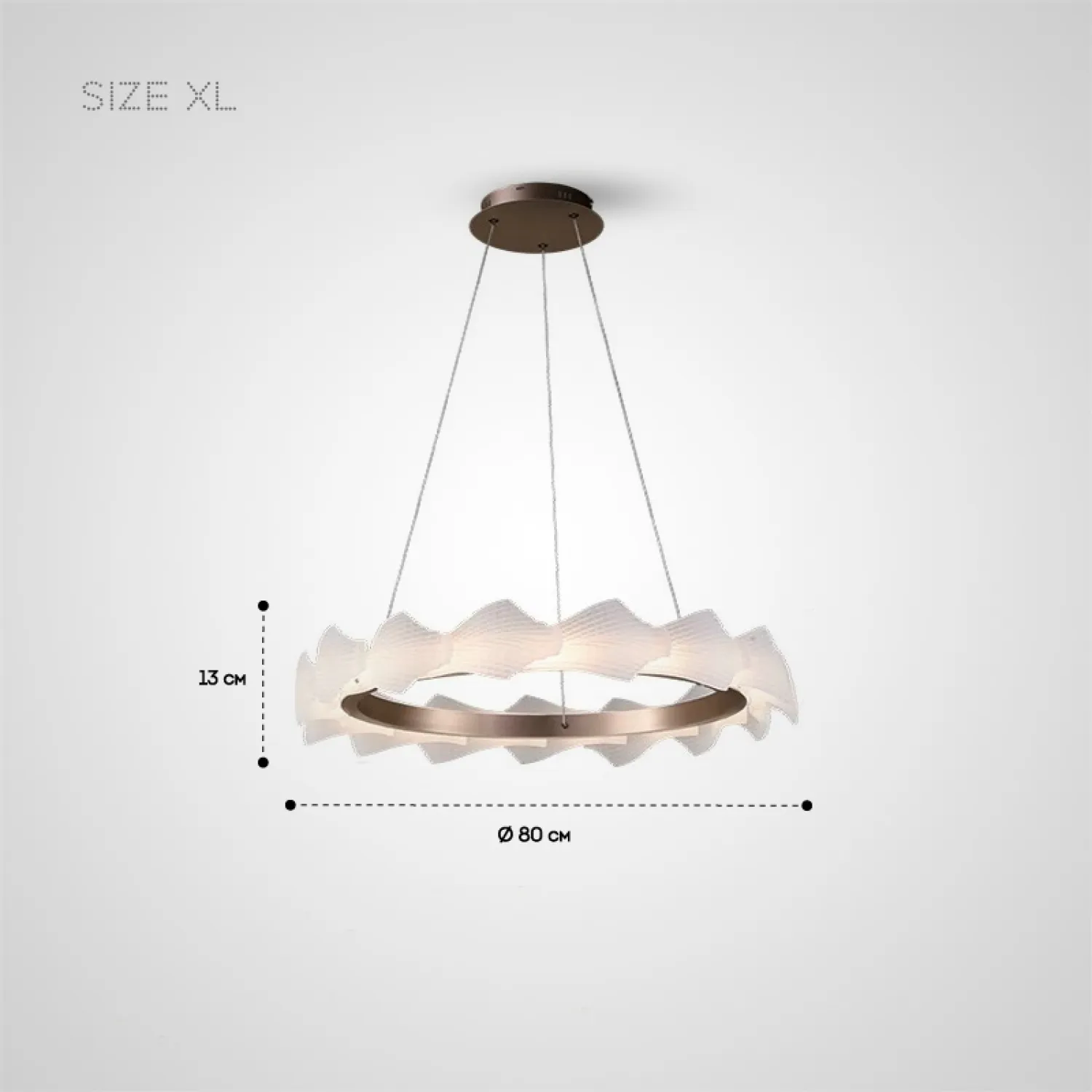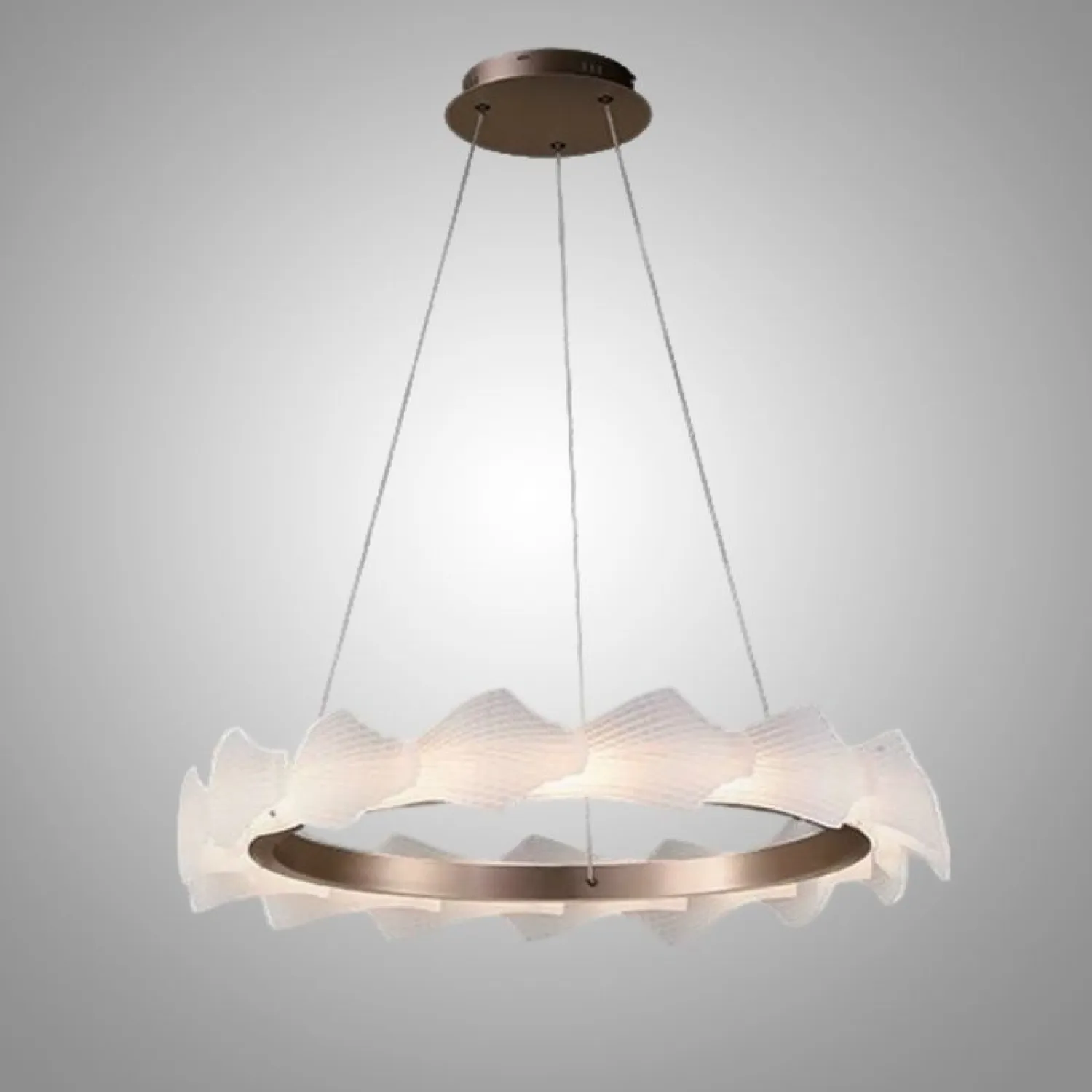 Модель NIAL-RING — это стильный кольцевой светильник с волнообразным корпусом. Корпус выполнен из рельефных рассеивателей с чешуйчатым узором из металла и акрила в тёплом розовом золоте. Он создаёт мягкое и равномерное освещение, которое идеально подходит для гостиной или спальни в скандинавском, лофт или классическом стиле.