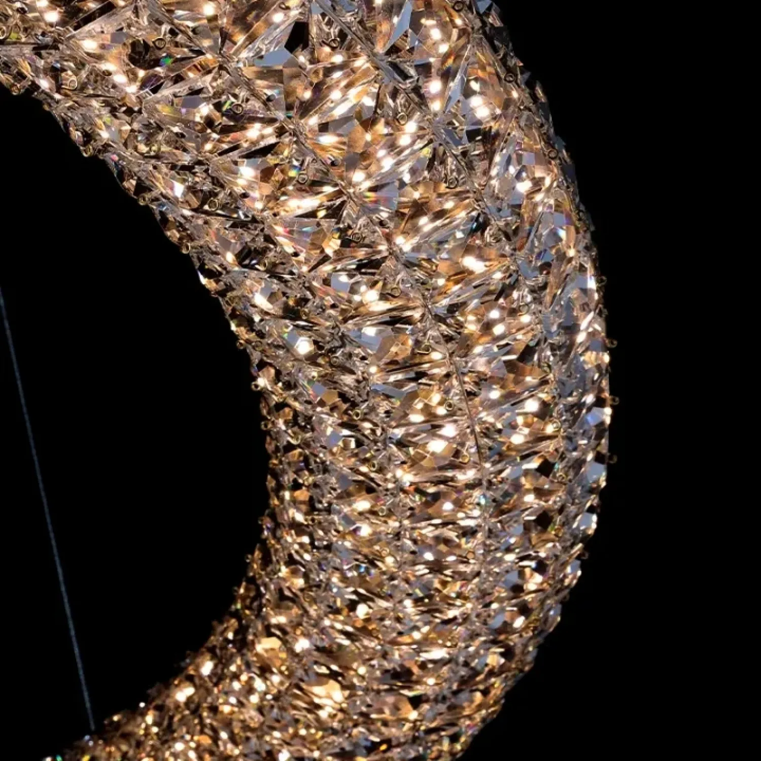 Модель ALEF — это стильное кольцевое светодиодное освещение с золотым покрытием. Оно идеально подходит для интерьеров в стиле лофт, скандинавском дизайне или классической классике. Светильник создает мягкое, диффузное освещение, наполняя пространство уютом и элегантностью. Компактный крепеж и длинный подвес легко подстраиваются под разные высоты потолков. Трехцветная LED матрица позволяет выбирать из множества световых оттенков. Использование хрусталя К9 и эффектный дизайн со светодиодами придают светильнику роскошный вид. Он идеально подходит для гостиной, спальни или столовой, подчеркивая статус и хороший вкус владельца.