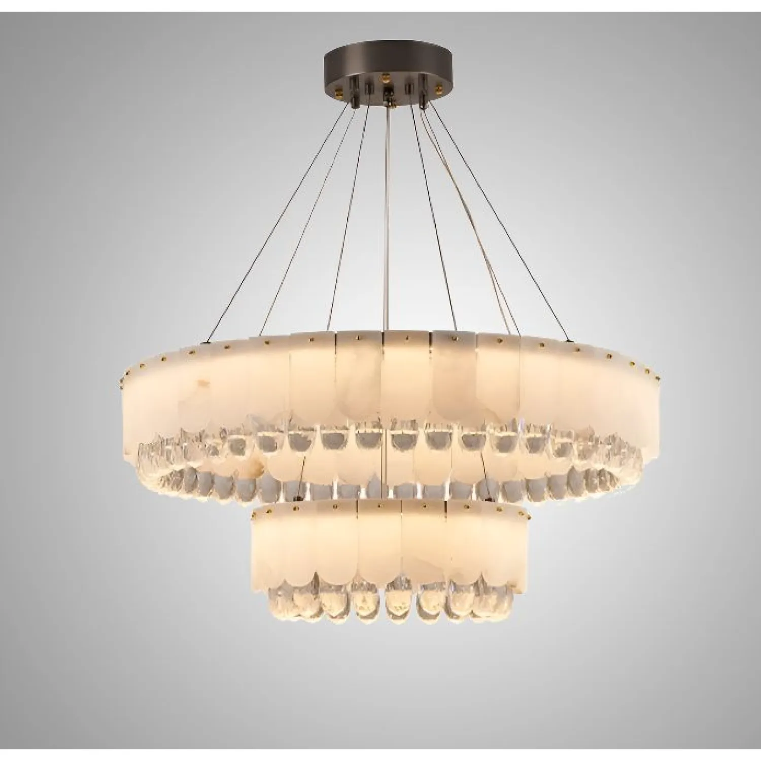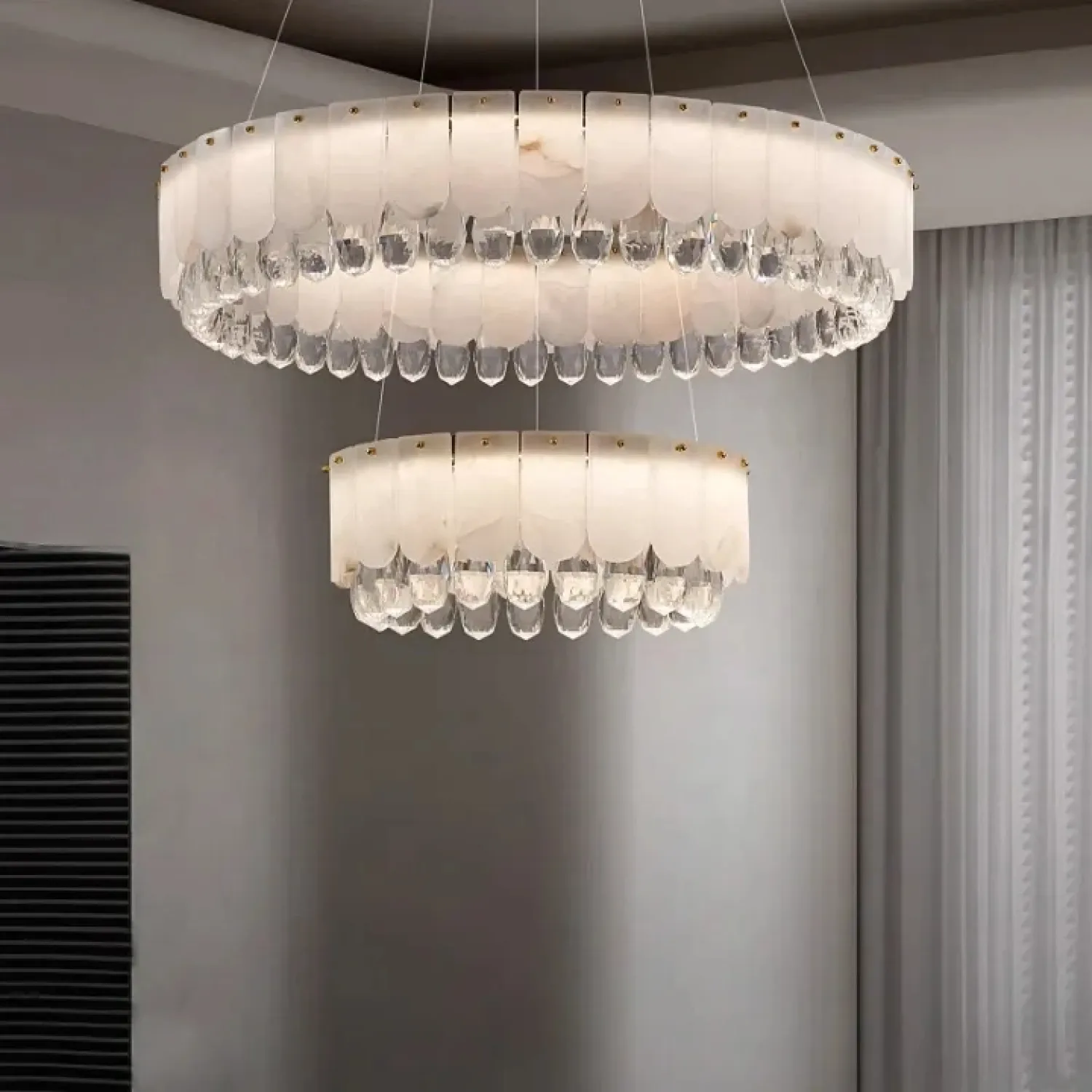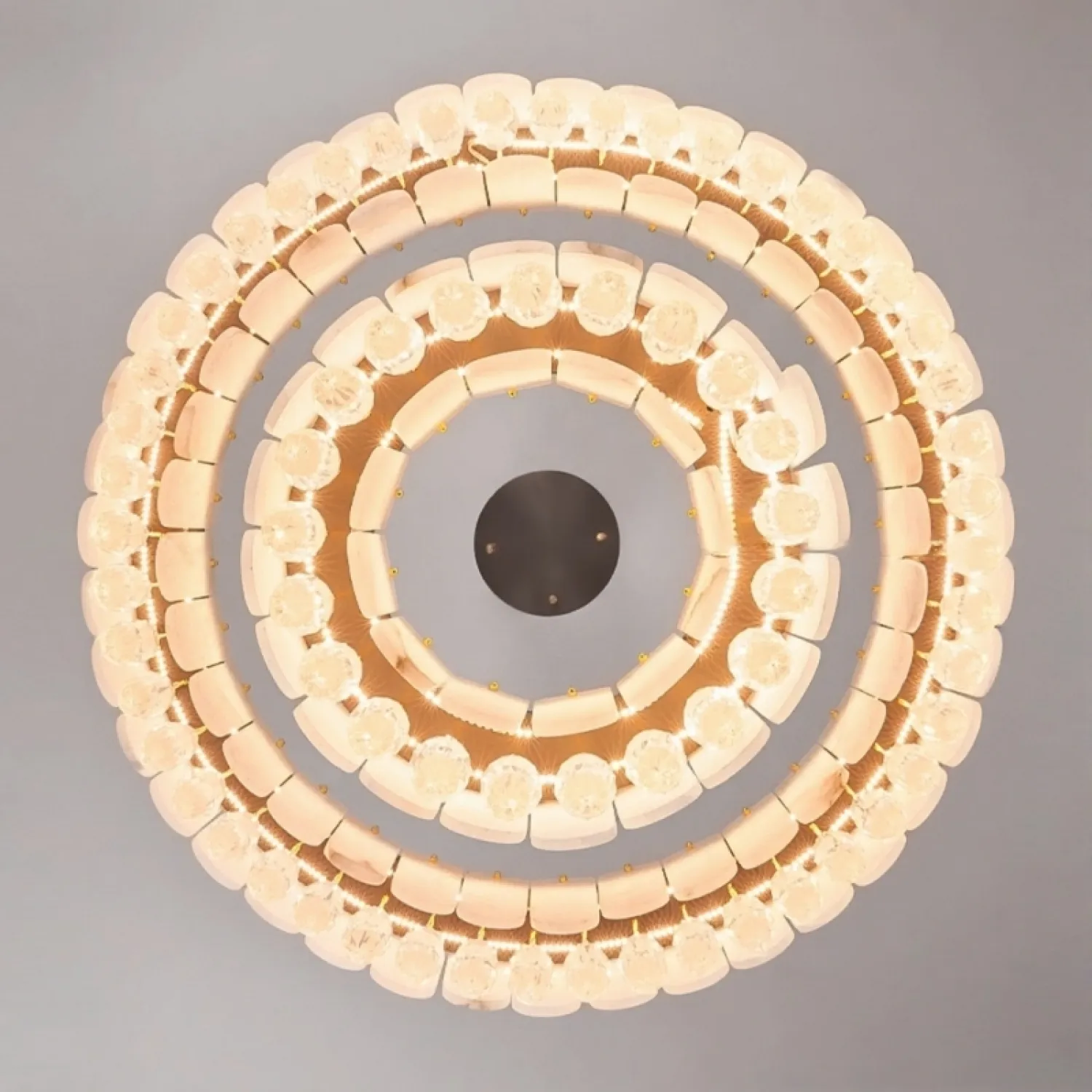 Люстра LIDVALD-B из коллекции кольцевых светильников изготовлена из латуни, мрамора с закругленными краями и хрустальных подвесок. Эти элементы создают мягкий, рассеянный свет. Ее лаконичный дизайн и компактные размеры делают ее идеальной для просторных современных интерьеров, таких как гостиные или столовые в стиле модерн. Светодиодная матрица с трехцветной подсветкой обеспечивает комфортное и стильное освещение.