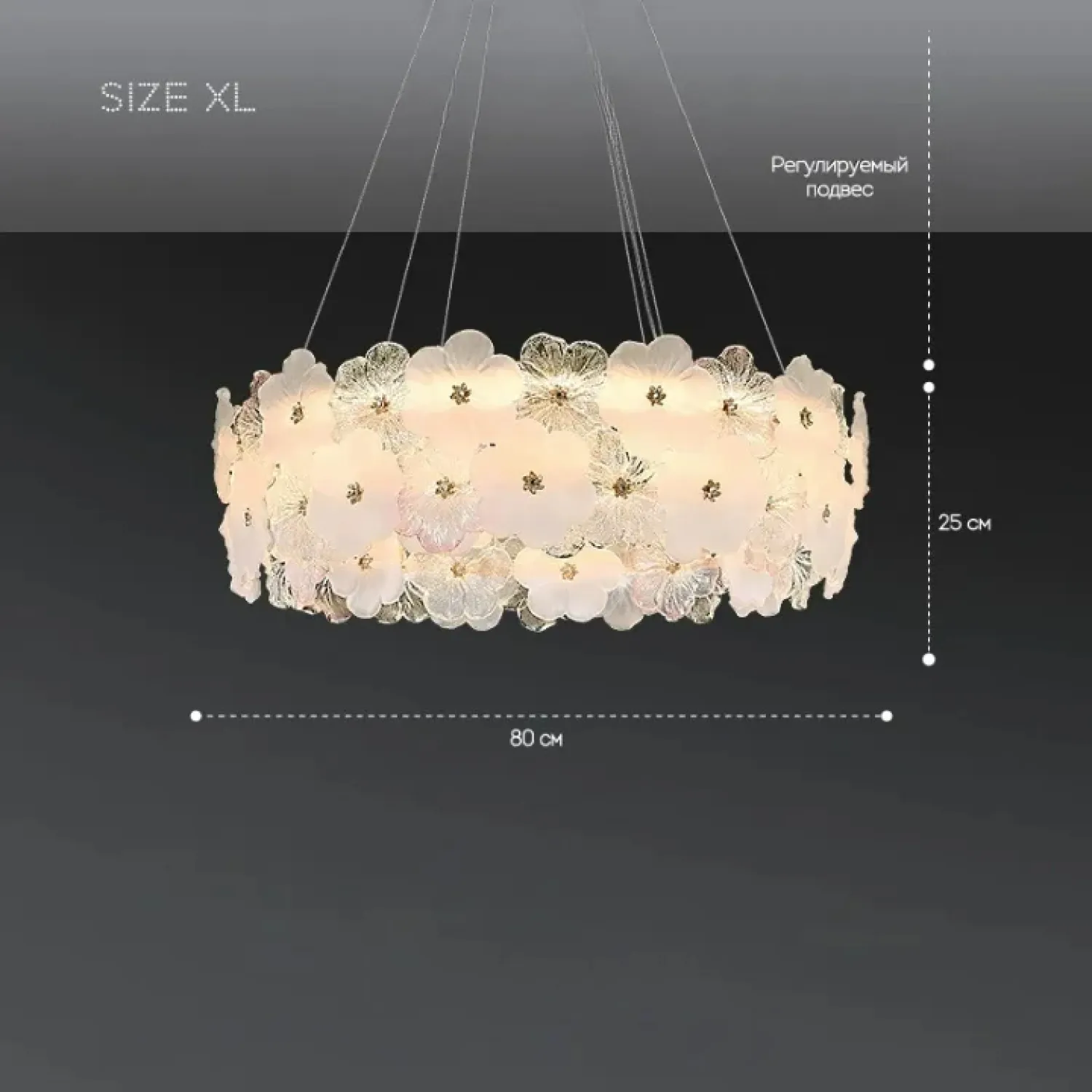 Этот светильник из серии модерн в стиле лофт наполняет интерьер нежностью и свежестью, идеально подходя для гостиной или столовой. Кольцевая модель IVET со стеклянным абажуром с цветочным узором создаёт мягкое рассеянное освещение. Внутри расположена LED-матрица с трехцветной подсветкой, позволяющей менять атмосферу от теплого уюта до яркого света. Оптимальный размер делает люстру центром любой просторной комнаты. Она гармонично вписывается в современный лаконичный интерьер, добавляя натурные нотки благодаря декоративному цветочному узору.