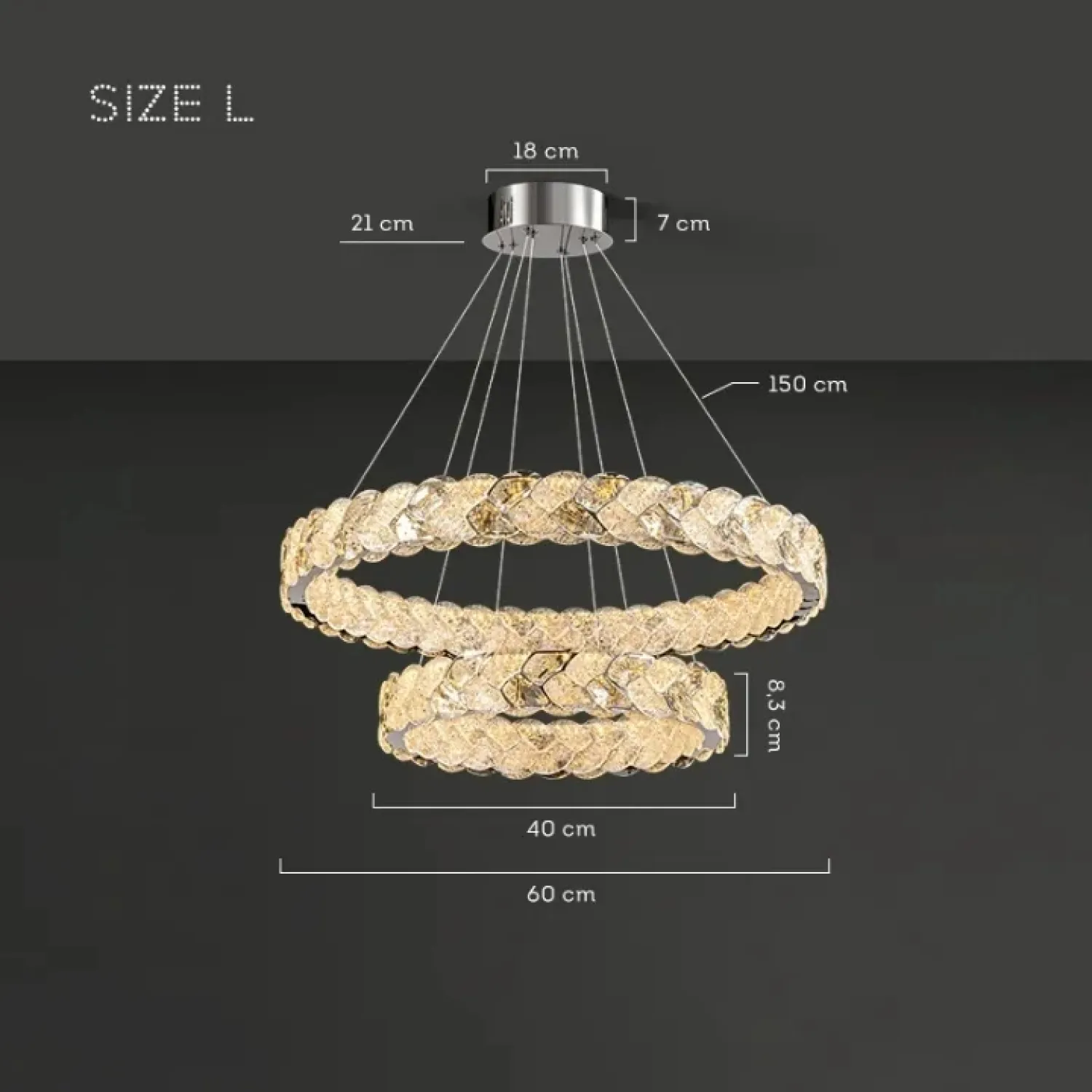Люстра выполнена из металла и хрусталя К9 с хромовой отделкой. Этот материал придает изделию изысканный и элегантный вид, гармонично сочетаясь с классическими и ар-деко интерьерами, а также с актуальным модерном. Благодаря своим размерам, люстра прекрасно подходит для просторных помещений, сохраняя баланс между выразительным дизайном и ненавязчивым освещением.