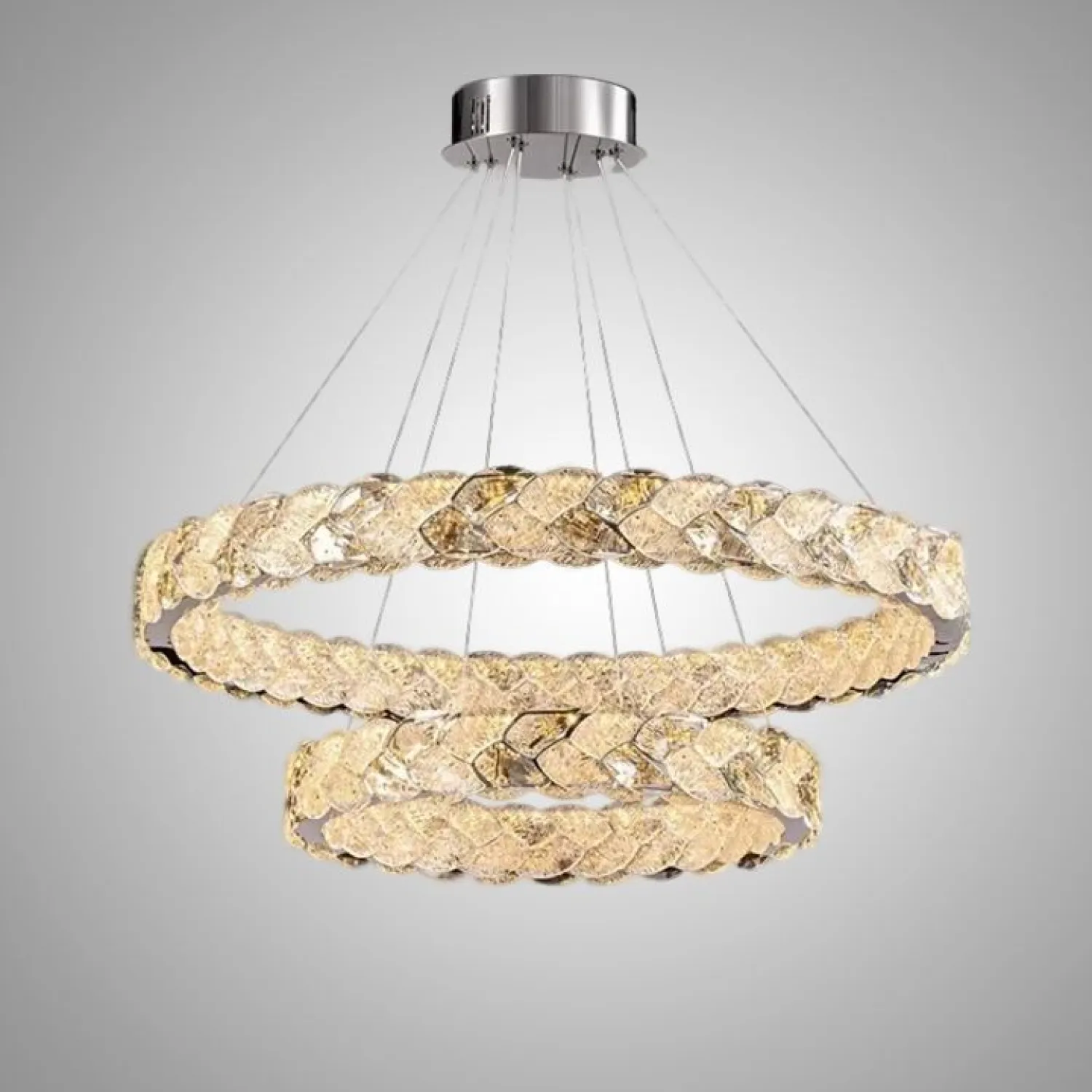 Спиральная кольцевая люстра ERHARD WAVE — это серия светодиодных светильников с мозаичным декором из премиального хрусталя. Она создает мягкий, рассеянный свет, наполняя помещение уютом и комфортом. Идеально подходит для современных гостиных и столовых.