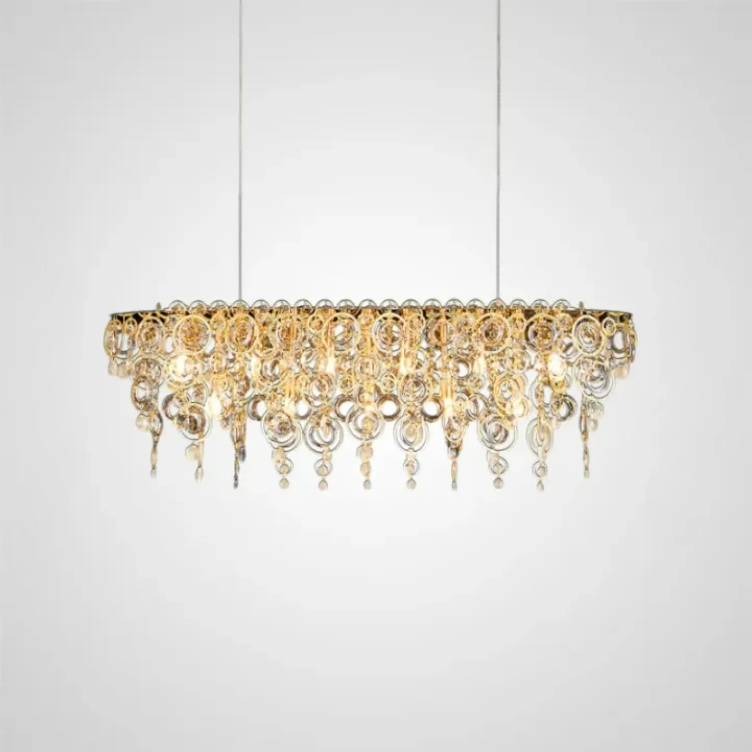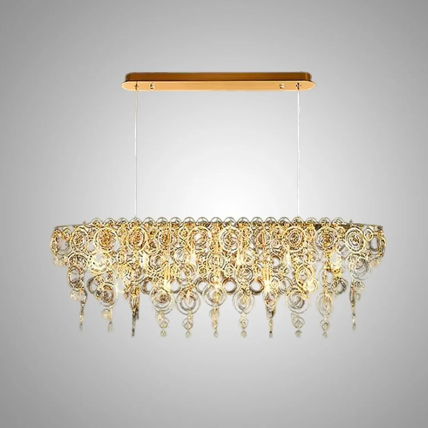 Реечный светильник ILMO-LONG в стиле модерн — это изящество и лаконичность в одном изделии. Он добавляет нотку роскоши в классический интерьер или современный лофт. Металлический каркас украшен хрустальными подвесками, которые мягко рассеивают свет, создавая уютную атмосферу. Стильные кольца и сверкающие элементы подчеркивают элегантность и статус помещения. Этот светильник идеально подходит для просторных интерьеров, где важно гармоничное сочетание классики и современных трендов 2025 года.