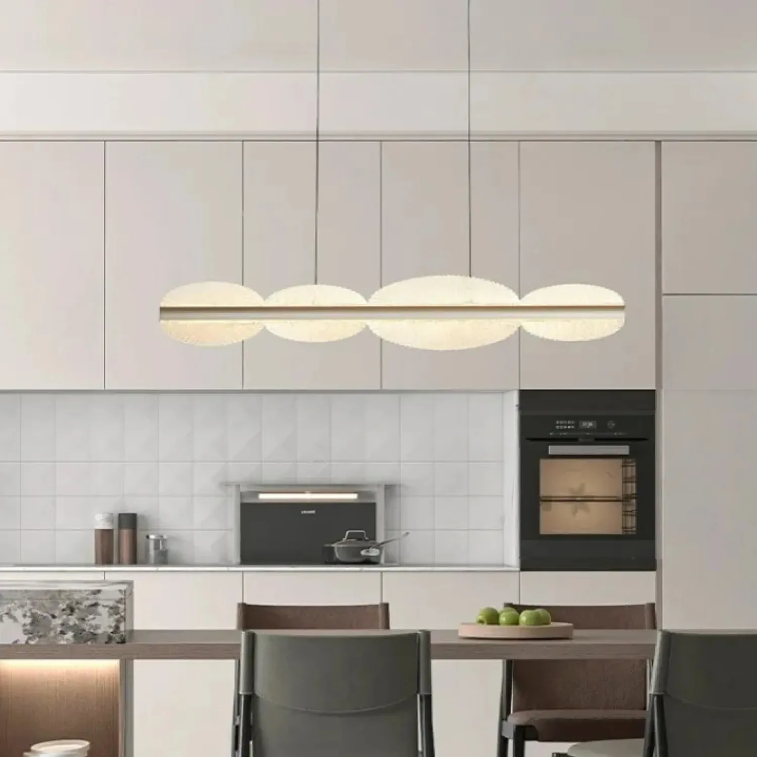 Светильник AJAX в серебристом цвете — это идеальное сочетание металла и акрила, которое создает мягкое и равномерное освещение. Он прекрасно вписывается в современные интерьеры, будь то лофт или скандинавский стиль. Благодаря вытянутой форме и волнообразным рассеивателям светильник добавляет пространству динамики и гармонично смотрится как в классических, так и в минималистичных интерьерах. Его компактные размеры делают его универсальным для кухни, гостиной или столовой.