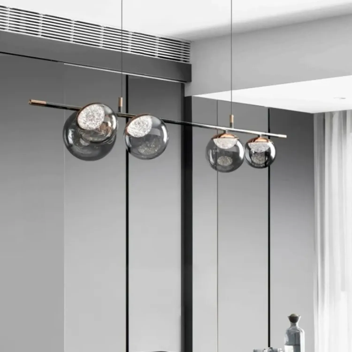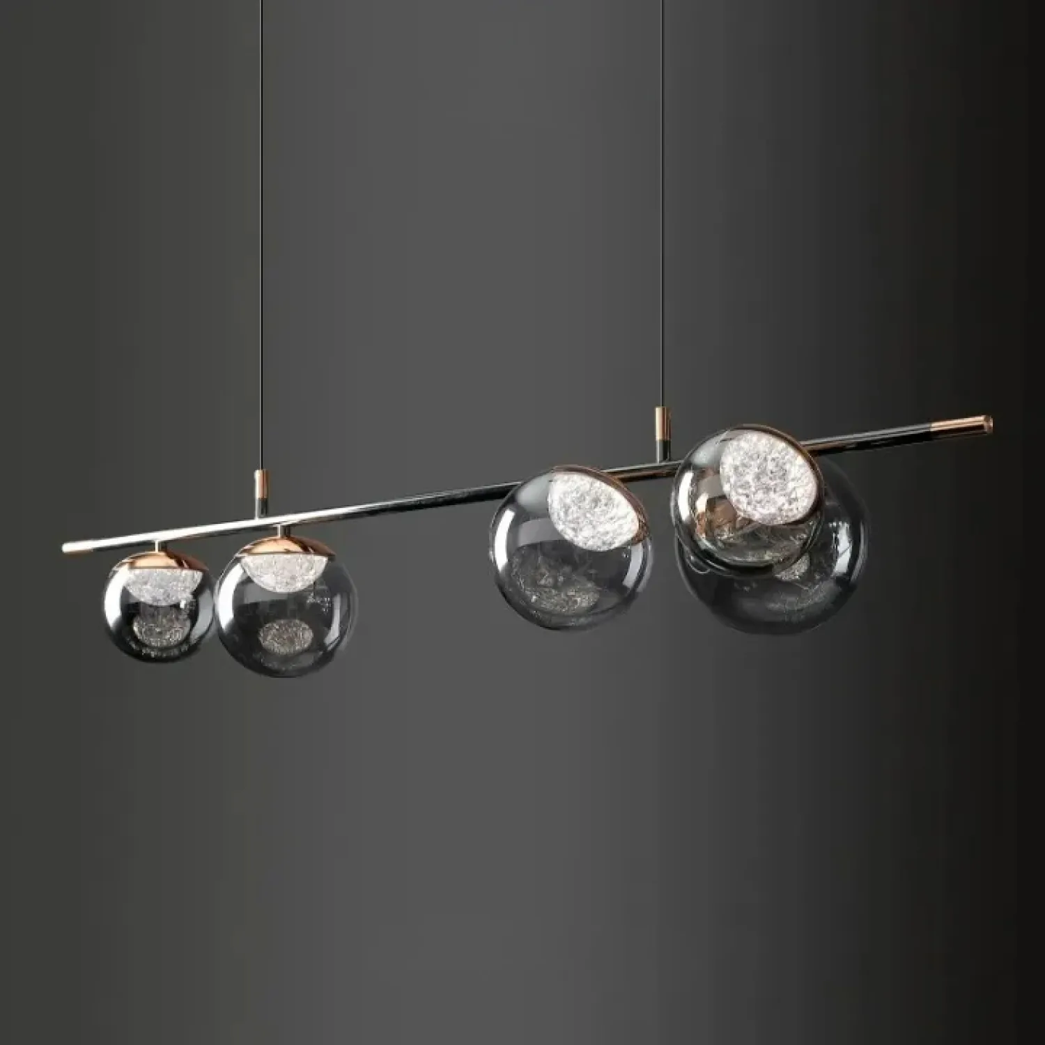 Модель MAYER-ORB-LONG — это изящный рядный светильник с ассиметрично расположенными шарообразными плафонами разного диаметра. Они изготовлены из стекла и хрусталя в жемчужно-черных и золотых тонах. Благодаря своим размерам, светильник эффектно подчеркнет просторные гостиные или столовые, выполненные в современном стиле, создавая мягкое и равномерное освещение. Этот светильник гармонично впишется в интерьер в стиле лофт или скандинавский, добавляя нотки минимализма и утонченности. Использование LED-матрицы обеспечивает энергоэффективность и возможность выбора из трех цветовых температур, создавая комфортную атмосферу для отдыха или приема гостей. Приобретите этот светильник для стильного акцента в квартире или офисе, чтобы подчеркнуть современность вашего пространства и достичь удивительного эффекта легкости и уюта.