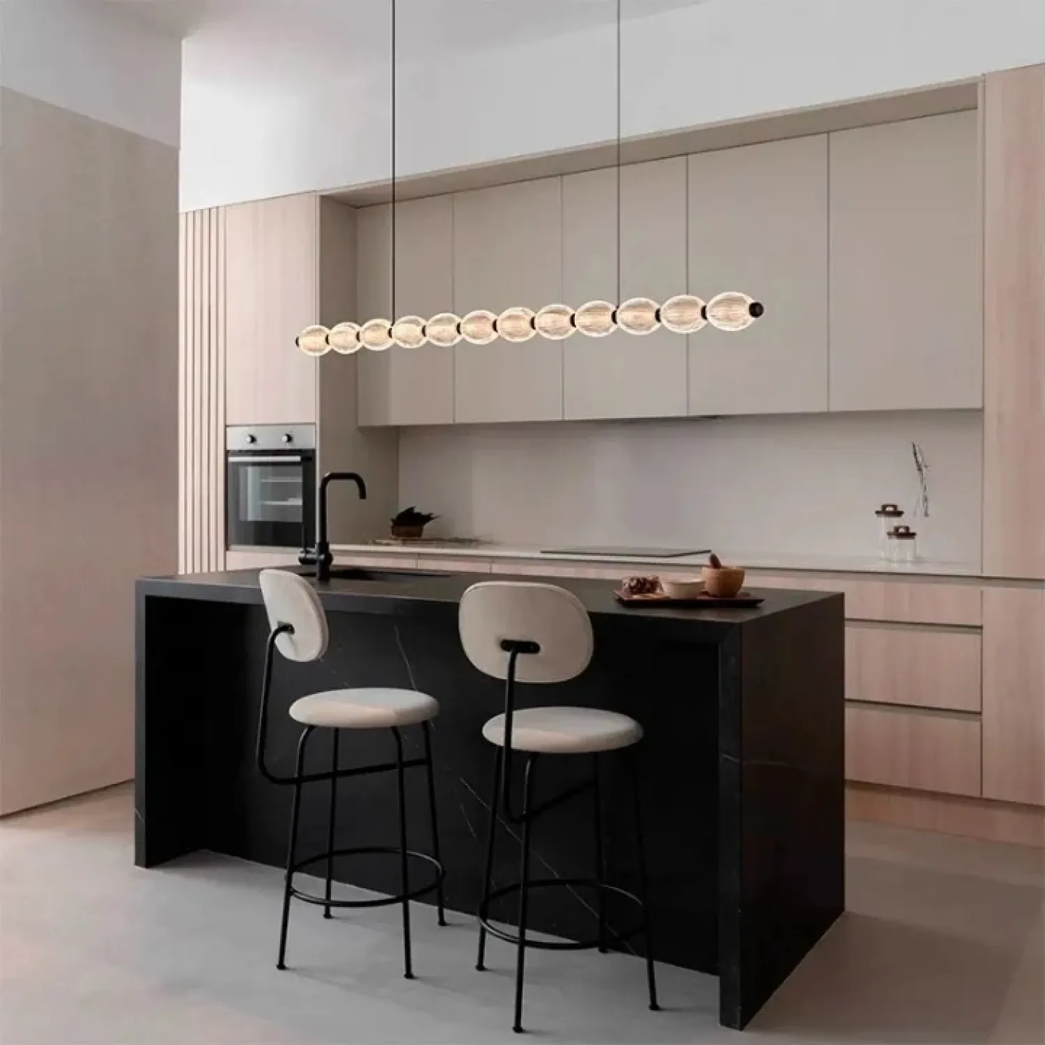 Модель CARA ELLIPSE LONG изготовлена из металла и акрила в глубоком черном цвете. Она мягко рассеивает свет, создавая уютную атмосферу в современном интерьере. Удлиненная эллиптическая форма и рельефные плафоны придают светильнику элегантность и динамику, подчеркивая стиль минимализм, лофт или скандинавский как в кухне, так и в гостиной. Благодаря LED-матрице, которая излучает трехцветный свет, и регулируемой длине подвеса, этот реечный светильник легко адаптируется под различные сценарии освещения и интерьерные решения. Его лаконичный дизайн органично вписывается в просторные помещения, добавляя функциональность и эстетику без перегрузки пространства.