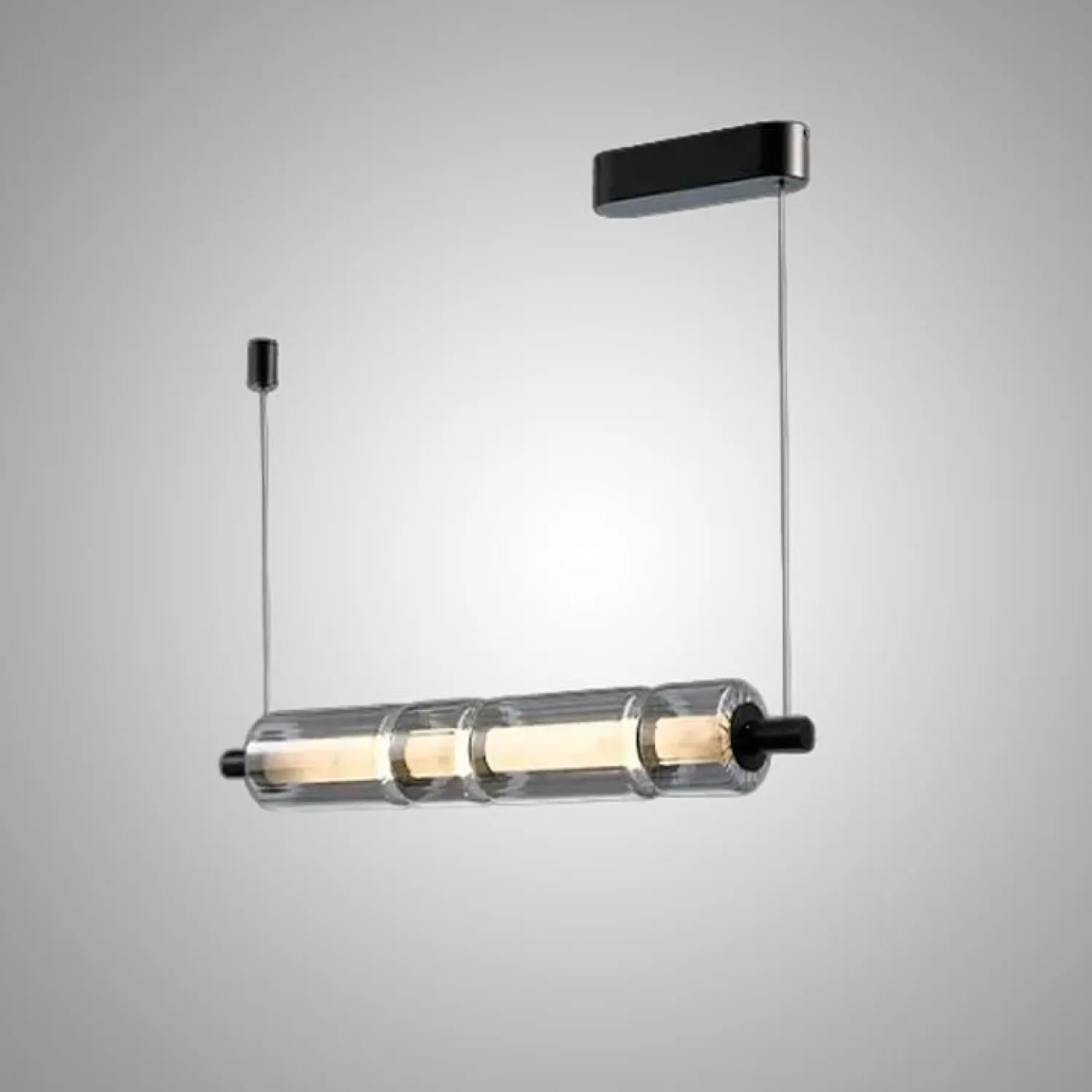 Удлиненная форма с прозрачными цилиндрическими плафонами и внутренними рассеивателями из мрамора мягко распределяет свет. Это создает уютную обстановку. Минималистичный дизайн и оригинальная текстура с переливающимися оттенками прекрасно сочетаются с интерьером в стиле лофт или классическом.
