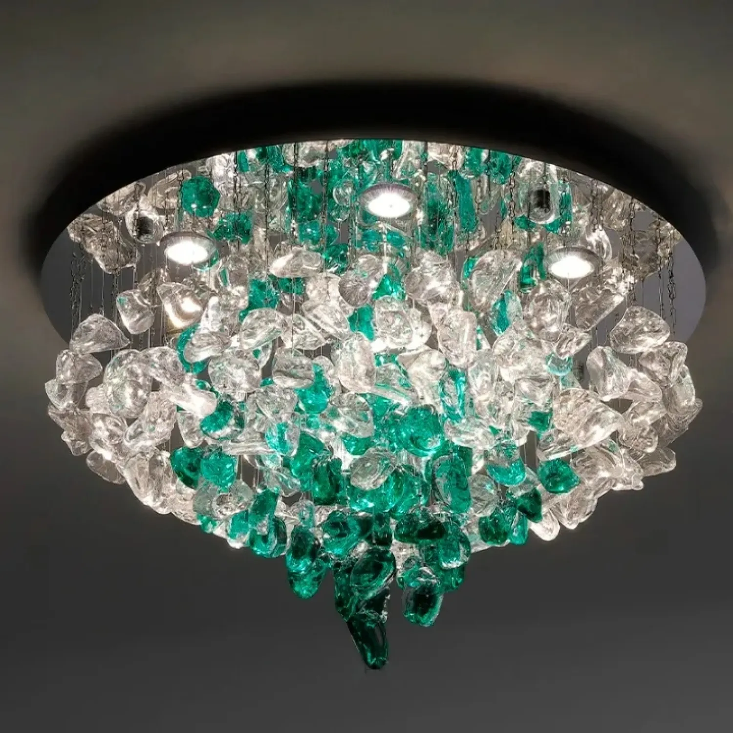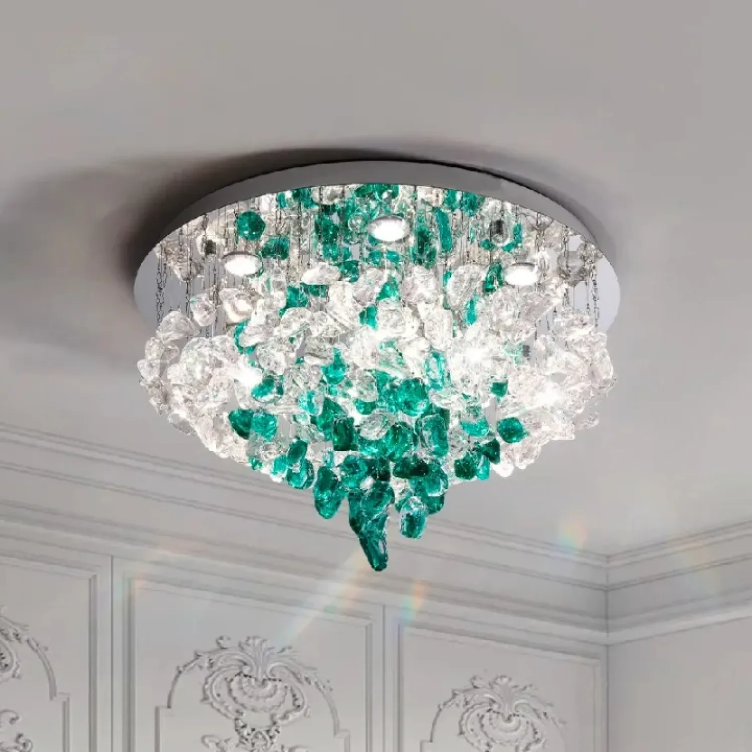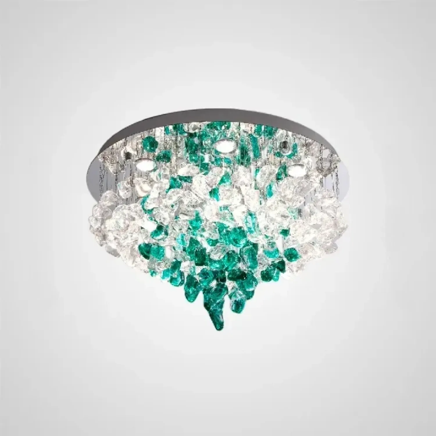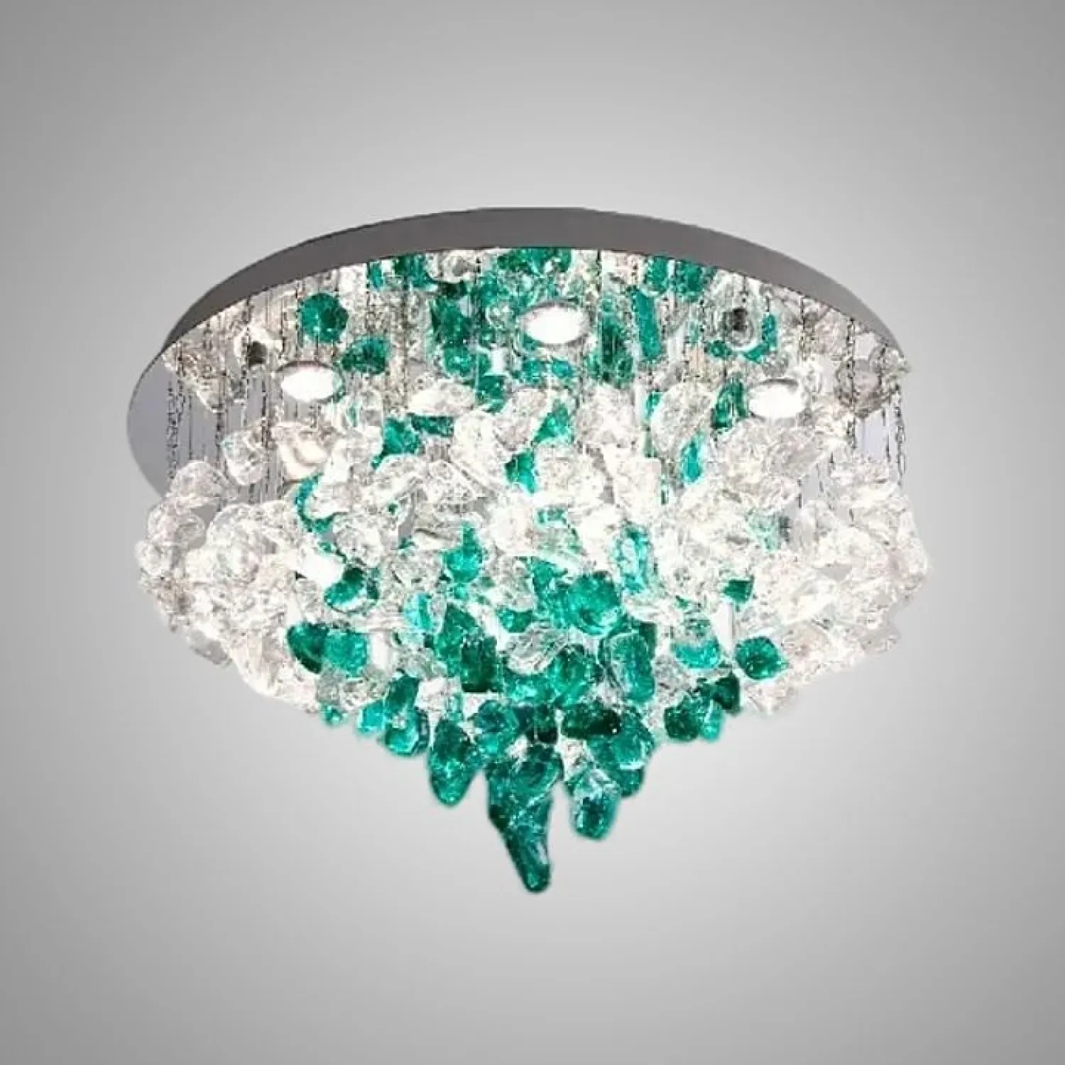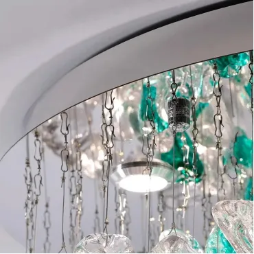 Люстра TIFFANI-CH станет эффектным акцентом в скандинавском или модерн интерьере. Она добавит свежести и лёгкости пространству, наполняя его мягким светом. Люстра выполнена из металла и цветного стекла прозрачных и зелёных оттенков, что позволяет ей гармонично вписываться в светлые гостиные и просторные кухни. Подвесные стеклянные элементы неправильной формы на дисковом основании создают динамичную атмосферу, привнося живость и оригинальность в интерьер. Модель отлично сочетается с современным дизайном и хромированными деталями, придавая пространству ощущение свежести. Обновите свой дом с этим светильником, который не только качественно освещает, но и служит ярким акцентом, подчёркивая стиль вашего интерьера.