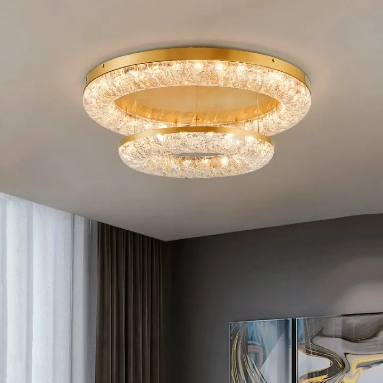 Этот светильник гармонично впишется в интерьер гостиной, кухни или спальни, не перегружая пространство. Он станет эффектным акцентом, создавая атмосферу уюта и комфорта. Благодаря LED-матрице с трехцветным освещением, люстра не только украшает помещение, но и обеспечивает качественное освещение.