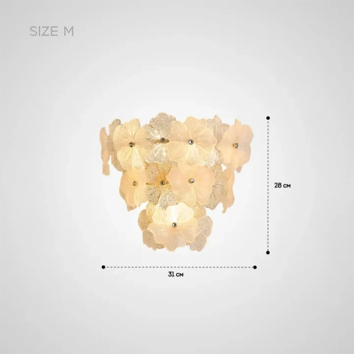 Настенный светильник IVET C WALL — это изысканное сочетание металла и стекла. Его украшает изящный цветочный орнамент из рельефного матового и прозрачного стекла. Этот светильник придает интерьеру нежность и утонченность. Золотой каркас и флористические элементы добавляют элегантности, идеально вписываясь в просторные гостиные, спальни или прихожие. Он уместен как в классическом, так и в скандинавском стиле. Светильник прекрасно подходит для помещений со средними потолками. Он гармонично сочетается с другими элементами премиального освещения или уютной лофт-обстановки. Встроенные источники света с цоколем E14 создают мягкий рассеянный свет, наполняя пространство уютом и теплом.