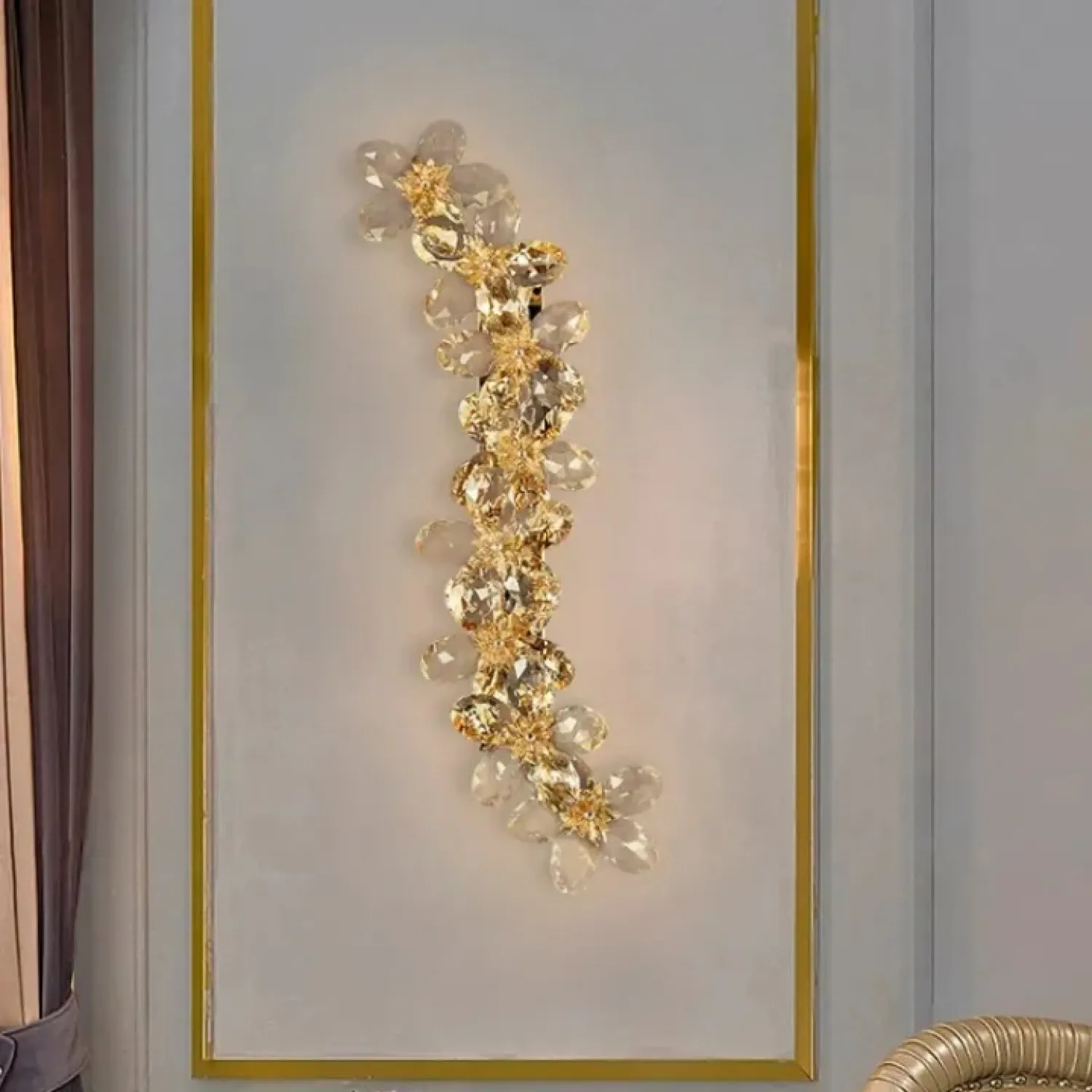 Настенный светильник EGEL WALL — это воплощение изящества и роскоши. Он напоминает цветочные композиции из ограненного кристалла и металла, украшенные золотой гравировкой. Этот светильник идеально впишется в современную гостиную или классический интерьер, создавая мягкое, рассеянное освещение, которое добавляет уюта и тепла.