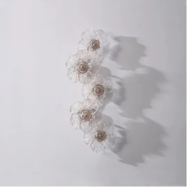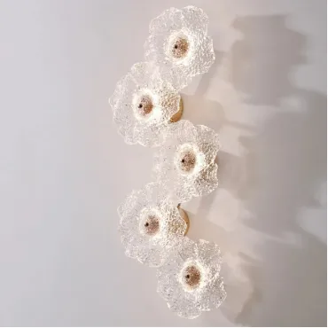 Настенный светильник PAU из прозрачного стекла с цветочными узорами создаёт уютную и тёплую атмосферу в классических или скандинавских интерьерах. Его минималистичный дизайн из металла и латуни гармонично вписывается в современные стили, такие как модерн или лофт. Светильник оснащён трёхцветной LED-матрицей, которая равномерно распределяет мягкий, рассеянный свет, акцентируя внимание на натуральных элементах декора. Компактные размеры позволяют ему легко сочетаться с любым интерьером, не перегружая пространство. Этот светильник идеально дополняет дизайнерские решения, выполненные из стекла и металла, придавая комнате элегантность и особую атмосферу.