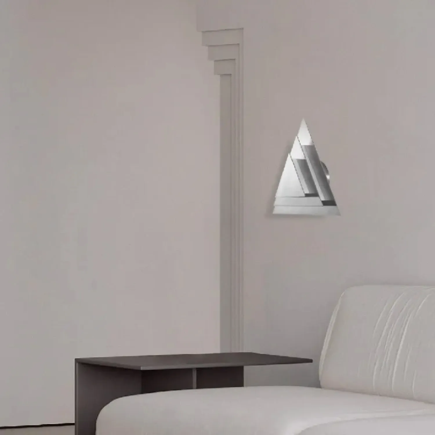 Настенный светильник TRISTAN из металлических треугольных пластин создает мягкое, рассеянное освещение, которое идеально подходит для уютного интерьера в стиле лофт или скандинавском стиле. Его уникальный корпус придает пространству выразительность и подчеркивает элегантность современных и уютных помещений. Светильник гармонично смотрится как в гостиной, так и в спальне или коридоре, создавая атмосферу легкости и спокойствия. Дизайн выполнен из материалов с металлическим блеском и отличается минималистичными формами.