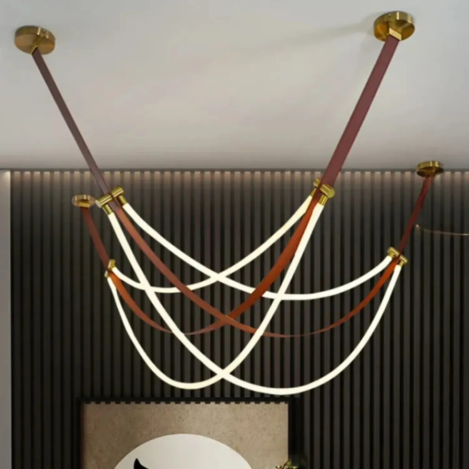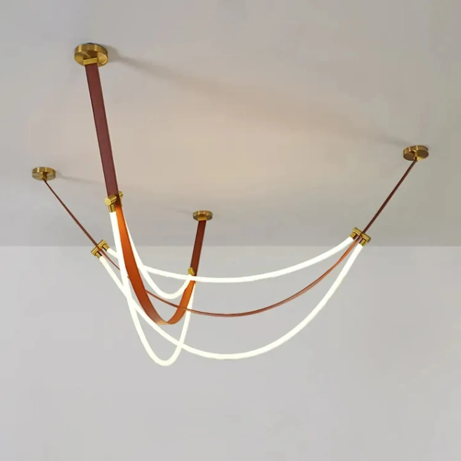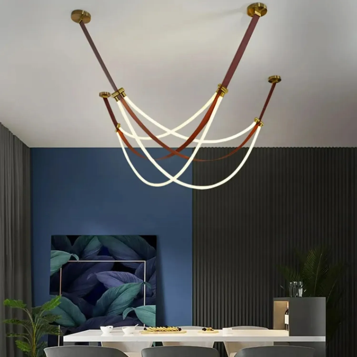 Преобразите интерьер с помощью подвесного светильника OBERT B. Этот светильник, выполненный из экокожи, силикона и металла в тёплых коричневых тонах, станет стильным акцентом в любом помещении. Оригинальный дизайн с кожаными ремнями и гибкими силиконовыми шнурами, оплетёнными текстилем, создаёт мягкое и приятное освещение. Светильник идеально подходит для современных гостиных или уютных кафе. Его лёгкий и воздушный силуэт воплощает стиль лофт и скандинавского минимализма, добавляя пространству комфорт и эстетику. Длина кабеля в 190 сантиметров позволяет легко адаптировать светильник под различные высоты и размеры помещения, создавая атмосферу уюта и спокойствия.